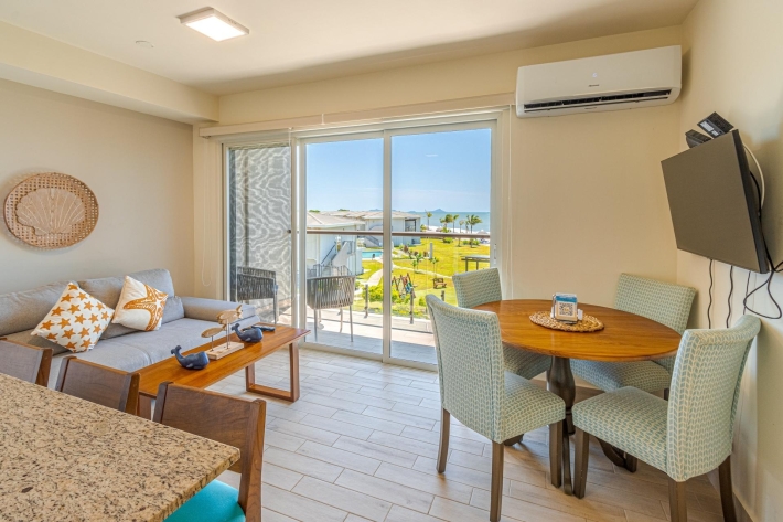 Stylish and fully furnished 2-bedroom, 2-bathroom ocean-view condo in the sought-after Ventanas community at Playa Caracol. Positioned on the second floor, this modern unit features an open-plan kitchen and living area, balcony with mountain, garden, and ocean views, and floor-to-ceiling windows for natural light. The master suite includes an ensuite bath and built-in closets, while the second bedroom is perfect for guests. Enjoy resort-style amenities including pools, children’s play areas, sports courts, beach gazebos, and 24/7 security. Just 1.5 hours from Panama City and 30 minutes from Coronado, this turnkey condo is ideal as a vacation home or investment property offering both lifestyle and income potential.