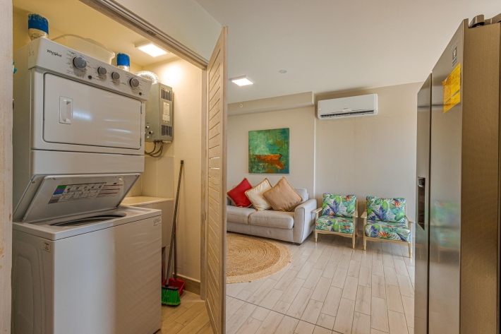 Experience modern coastal living in this spacious 2-bedroom, 2-bathroom beachfront condo located in the highly sought-after Ventanas community of Playa Caracol. Designed for flexibility, comfort, and style, this home offers a unique lock-off suite—ideal for guests, extended family, or generating rental income. The open-concept layout features a fully equipped kitchen with brand-new appliances, a bright and airy living area, and a private balcony with tropical views. The lock-off second bedroom includes its own bathroom and kitchenette, allowing you to rent one section while enjoying the other or combine both spaces for a larger retreat. Tastefully furnished and move-in ready, this condo combines high-quality finishes, split A/C units in every room, and modern beach-inspired décor for a turnkey experience. Amenities: Direct access to over 1 km of pristine beachfront Multiple pools and social areas Beach club and restaurant Sports courts and surf club Bicycle rentals and playgrounds 24/7 gated security and controlled access Located just 1.5 hours from Panama City and 30 minutes from Coronado, Playa Caracol offers the perfect mix of relaxation, recreation, and convenience. Whether you’re seeking a profitable investment property, a vacation rental, or your new home by the sea, this condo offers exceptional value and lifestyle appeal.
