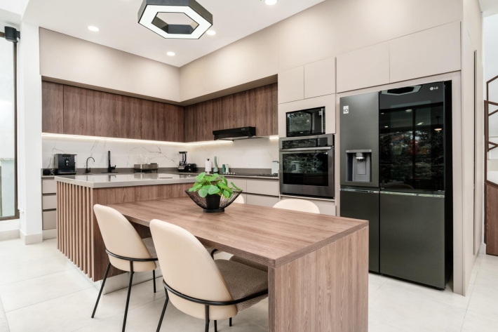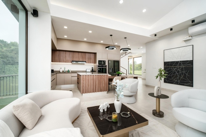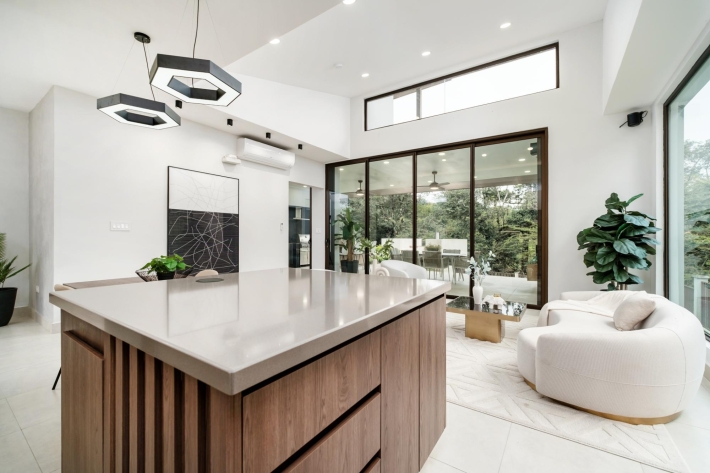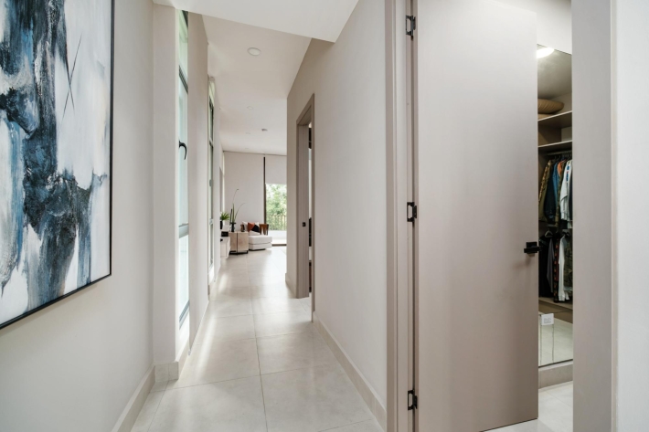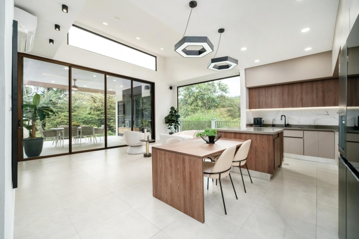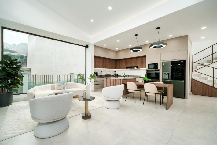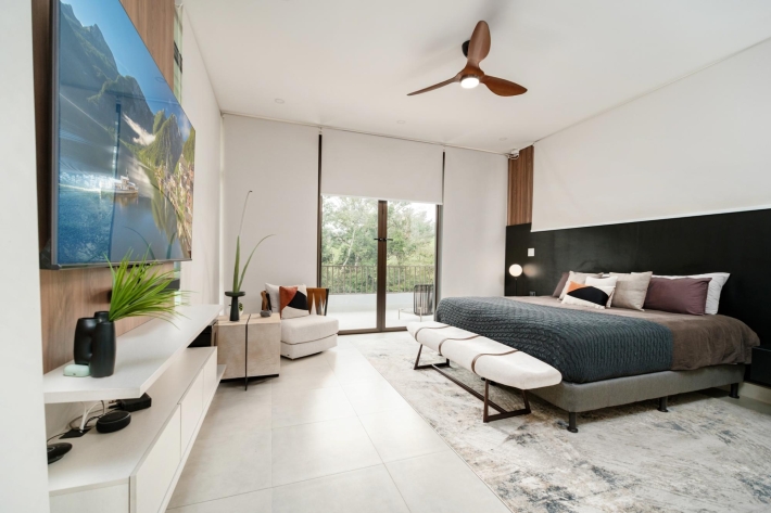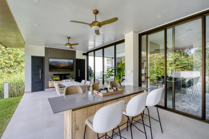 This stunning contemporary two-story home in Lucero Golf and Country Club showcases modern elegance and comfort. The main floor features a bright living room, a designer kitchen with Silestone countertops, custom cabinetry, breakfast bar, and top appliances. A stylish family room with built-ins and wine fridge opens to an impressive outdoor living area with kitchen, BBQ, wine cooler, and a cozy firepit seating area. Also on the main floor is a guest bedroom with ensuite bath, three half baths, and a spacious laundry room with storage. Upstairs offers a grand master suite with balcony overlooking the river, large walk-in closet, and luxurious bath, plus a third guest bedroom with ensuite. Fully furnished, professionally decorated, sprinkler system, two-car garage, and spectacular views.
