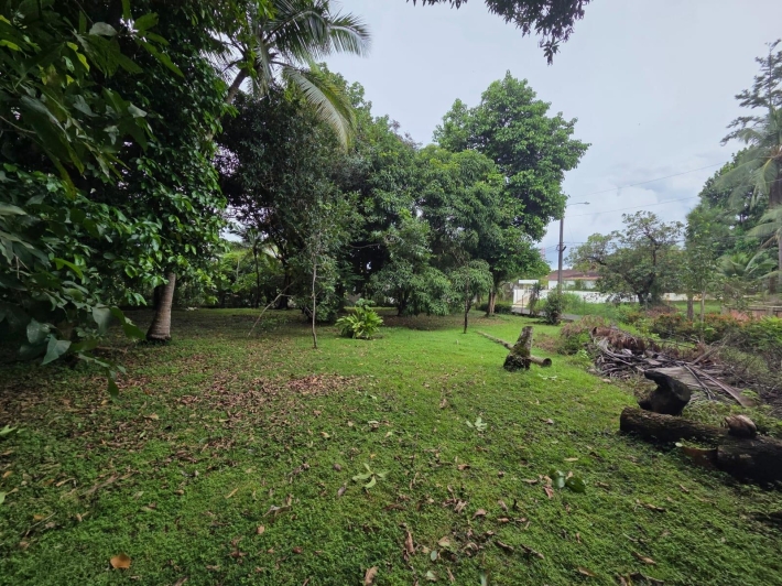 The land is fenced, located on a corner, and has fruit trees.