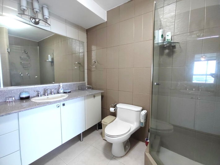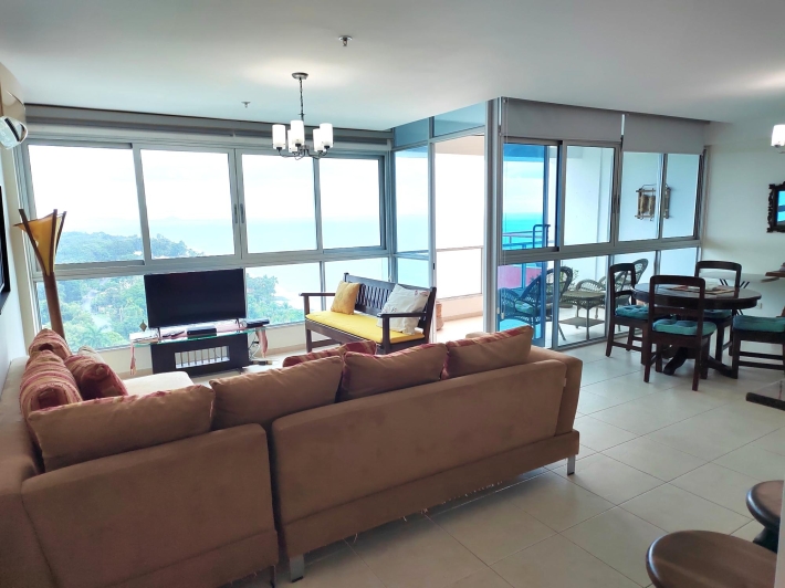 Spacious and bright 1-bedroom, 2-bathroom apartment for rent in the highly desirable PH Coronado Bay, one of Coronado’s premier oceanfront buildings. With 103.5 m², this unit offers comfort, ample space, and spectacular views. Enjoy beautiful ocean and mountain views from the bedroom, living/dining area, kitchen, and balcony, allowing you to experience stunning sunrises and sunsets from different areas of the home. The apartment features a master bedroom with an en-suite bathroom, an integrated living and dining room, a fully equipped kitchen, a laundry room, and a balcony with impressive views. Apartment Features: 103.5 m² 1 bedroom Walk-in closet 2 full bathrooms Living and dining area Equipped kitchen Laundry room Balcony with ocean and mountain views Ocean and mountain views from: bedroom, living/dining area, kitchen, and balcony. Building Amenities: Oceanfront swimming pools Fully equipped gym Event/party room Lounge and relaxation areas Direct beach access 24/7 security Parking Lobby and elevators Ideal for those seeking oceanfront living with comfort, privacy, and excellent amenities in one of Coronado’s most desirable buildings.