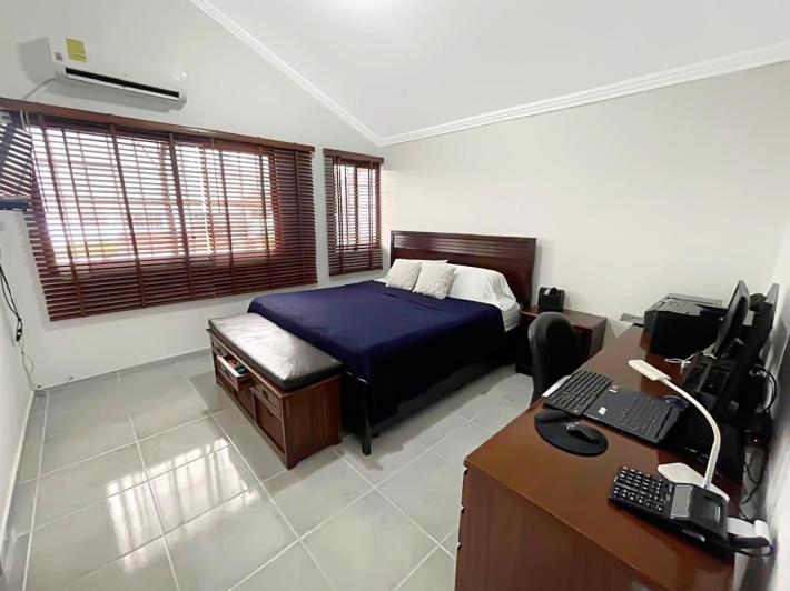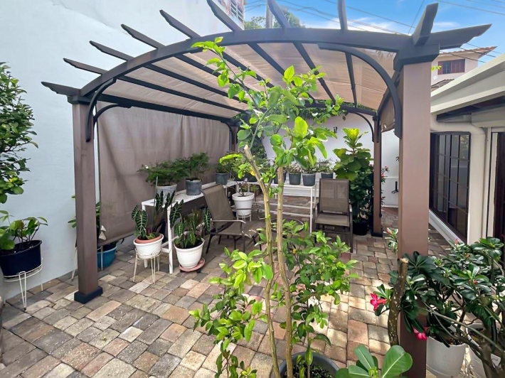 Beautiful and impeccable corner house with parking, portal, terrace, laundry room, storage room and rear patio: -The parking lot has capacity for three (3) cars and maintains, like the portal, a cobblestone floor next to a concrete slab roof with smooth plaster, it has two electric gates made of rolling metal sheets. -The terrace has a tile floor, next to a tongue and groove wood ceiling and a tile roof on a metal structure. -The laundry room has a cobblestone floor next to a concrete slab ceiling with smooth plaster. -The storage room has a rubber-covered concrete floor, next to a concrete slab roof with smooth plaster. -The rear patio and the laundry room have cobblestones, a portion of clay and synthetic grass in the front patio. It also has a block wall around its perimeter. Four bedrooms Three bathrooms Service room and bathroom.