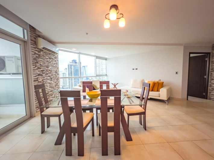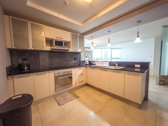 We offer this beautiful apartment for rent in P.H. Riverside, located in one of the most exclusive and peaceful areas of Panama City. It is rented fully furnished and is completely move-in ready—just bring your suitcases. You’ll have easy access to hospitals, shopping centers, parks, football fields, and more. These are just some of the many benefits of living in the Costa del Este area. The apartment features an excellent layout with 121 m² and includes: 2 bedrooms The master bedroom includes a walk-in closet 1 parking space 1 storage unit 2 bathrooms Living–dining area Open kitchen Balcony Laundry area The building offers: 4 elevators (1 service elevator and 3 passenger elevators) Backup power generator Water reserve tank 24-hour security Fire alarm and sprinkler system Social area with a party room, gym, pool, and game room