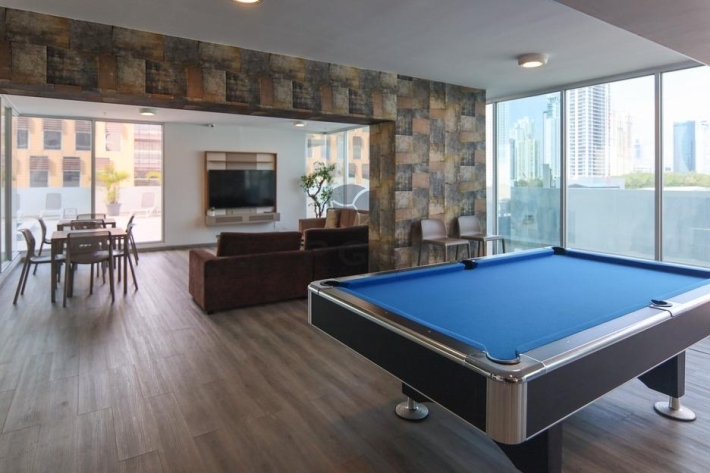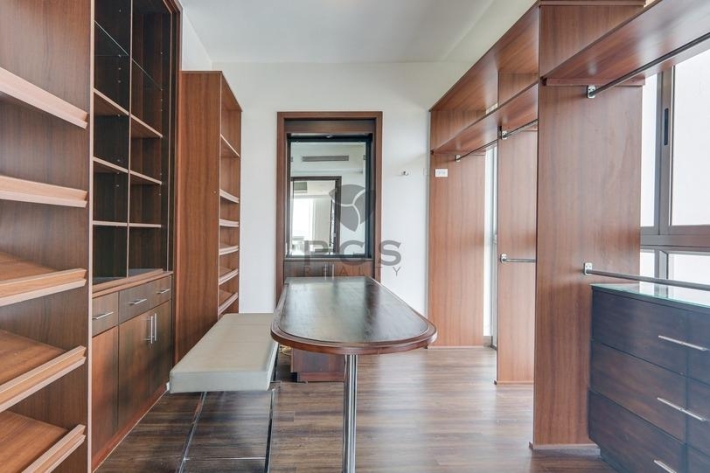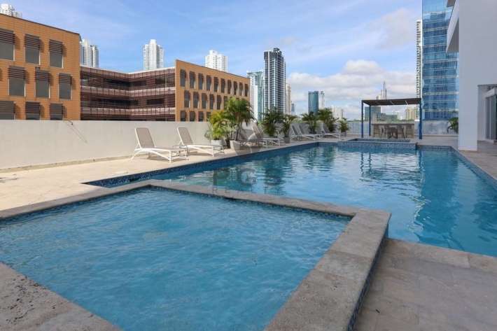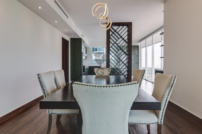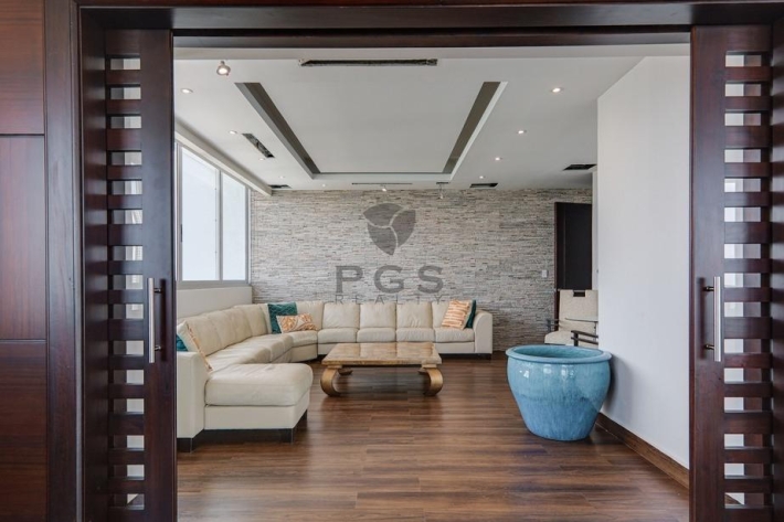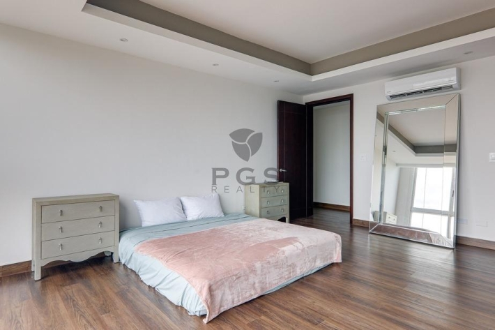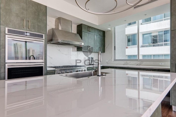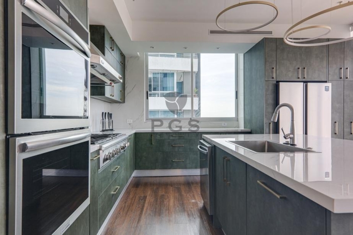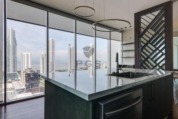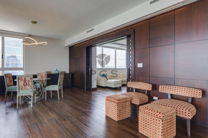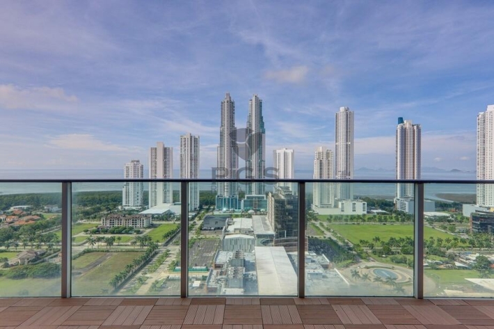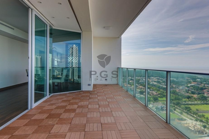 Features of this stunning property include: Large balcony and floor-to-ceiling windows with panoramic views of the Costa del Este skyline and the Pacific Ocean beyond Open-concept living-dining-kitchen area with energy-efficient central A/C system Family room/den that can be enclosed with sliding doors Gourmet kitchen with top-quality stainless steel appliances and quartz stone countertop Separate bar area with wine fridge and custom wine display rack Master suite with luxurious walk-in closet, additional closet and remodeled in-suite bathroom Two additional bedrooms with walk-in closets and private bathrooms Maid's quarters equipped with A/C Large laundry room with natural ventilation Three assigned parking spots on a low floor Large storage unit