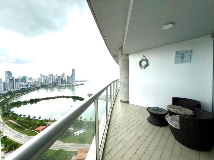 Apartment for sale in Yacht Club Avenida Balboa. Beautiful ocean views, facing Paitilla, model D, high floor. Living and dining room with balcony, 2 spacious bedrooms, both with balconies and en-suite bathrooms, guest half-bath. Spectacular social area with a swimming pool and a well-equipped gym.