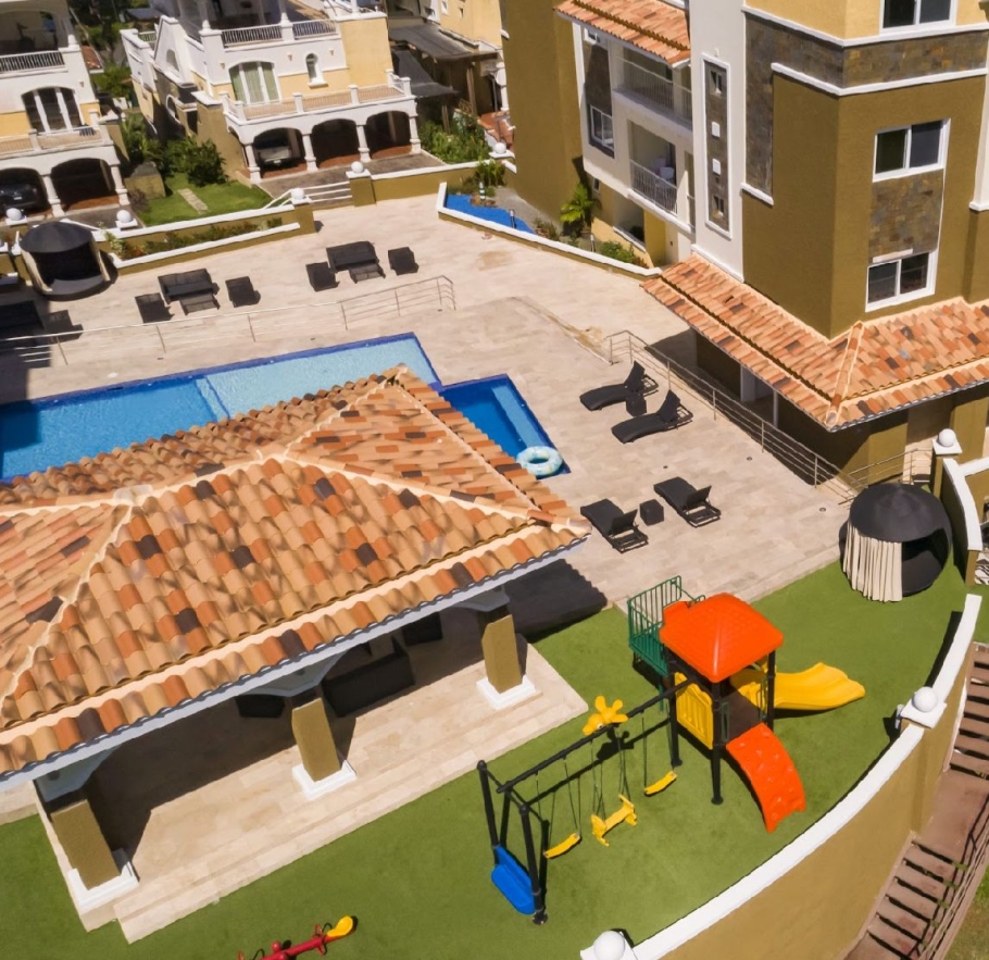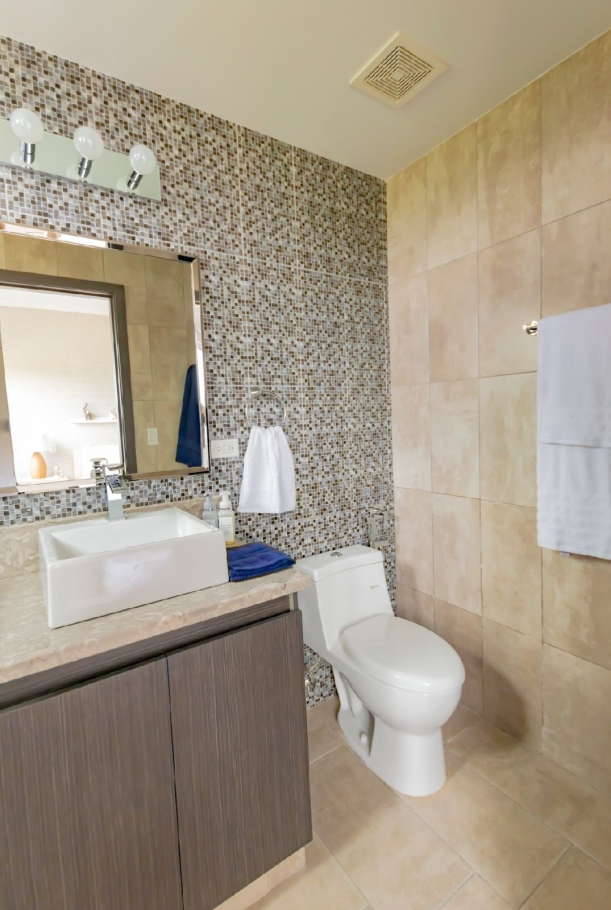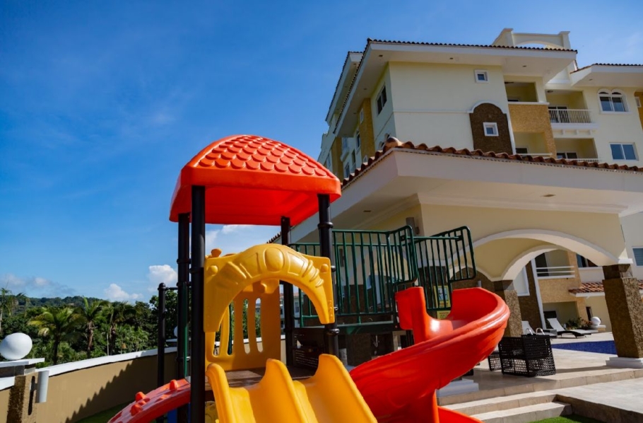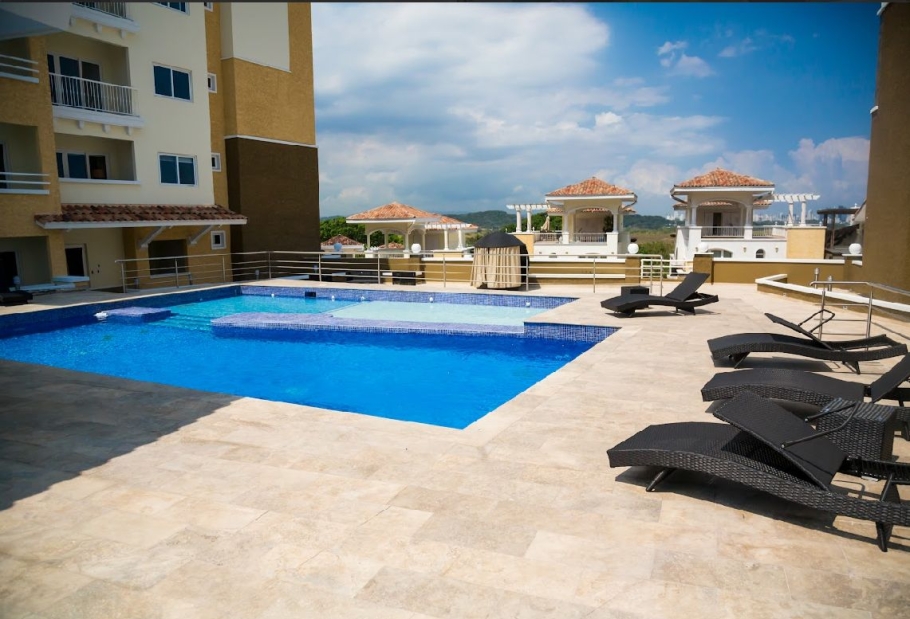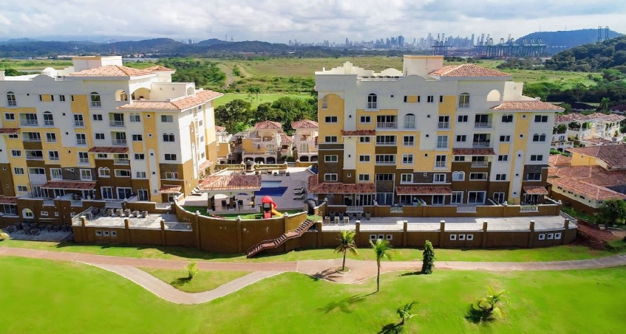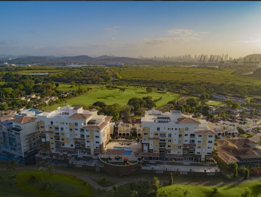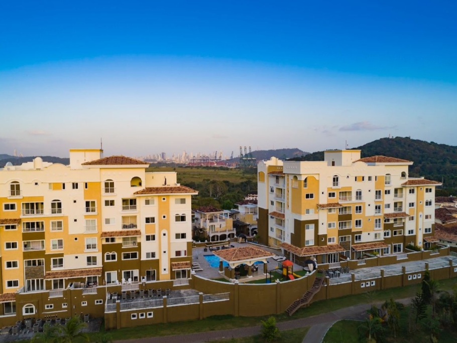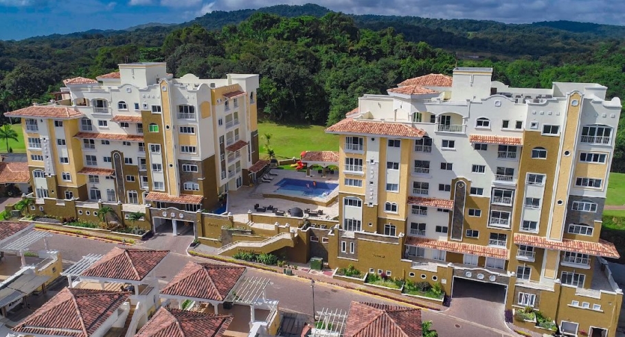 Forest Towers, located in Cocolí. This exclusive complex of two 7-story buildings offers breathtaking views of the Panama Canal, the city, and the forest reserve, within a private, gated community with a Mediterranean style.