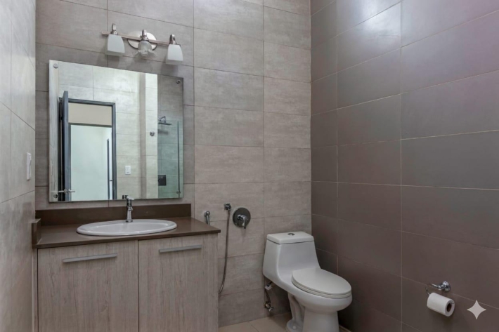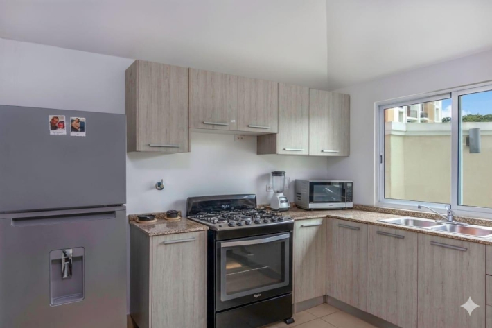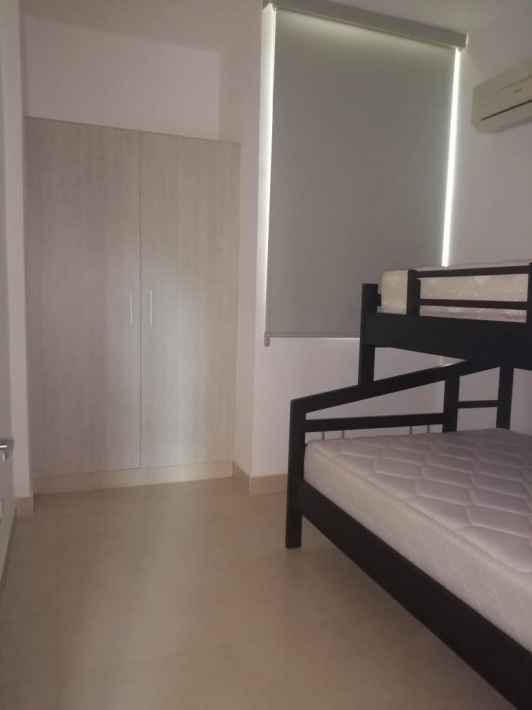Modern apartment with private patio and sliding doors, accessible from the living room and master bedroom to the terrace. Includes two parking spaces in front of the apartment. Gated community with pool, BBQ area, bar, and gazebo. Very well maintained.
