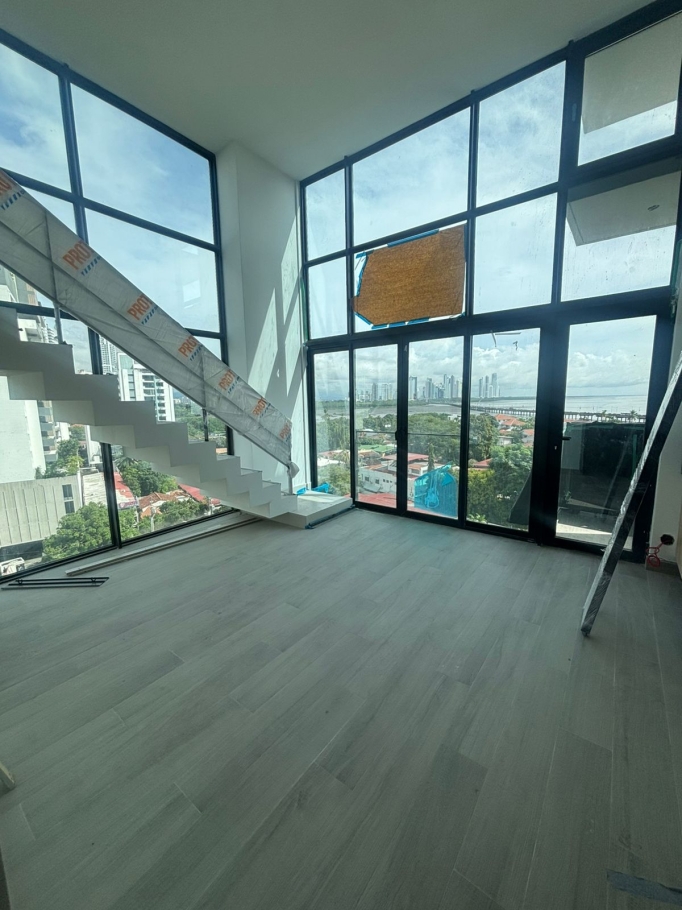 The apartment is 69.15 m2, a loft-style unit with luxury finishes. It has 2 bedrooms, 2 bathrooms, and 1 parking space. Fully furnished and with ocean views.