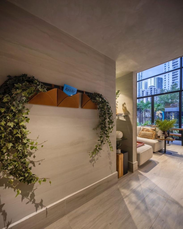 • JUNGLE - On the top floor, a 400 m² organic environment inspired by the Panamanian rainforest has been recreated. It naturally integrates diverse vegetation, water, rocks, and paving. This element within the project contributes a unique aesthetic whose main purpose is to emphasize the connection between residents and nature.