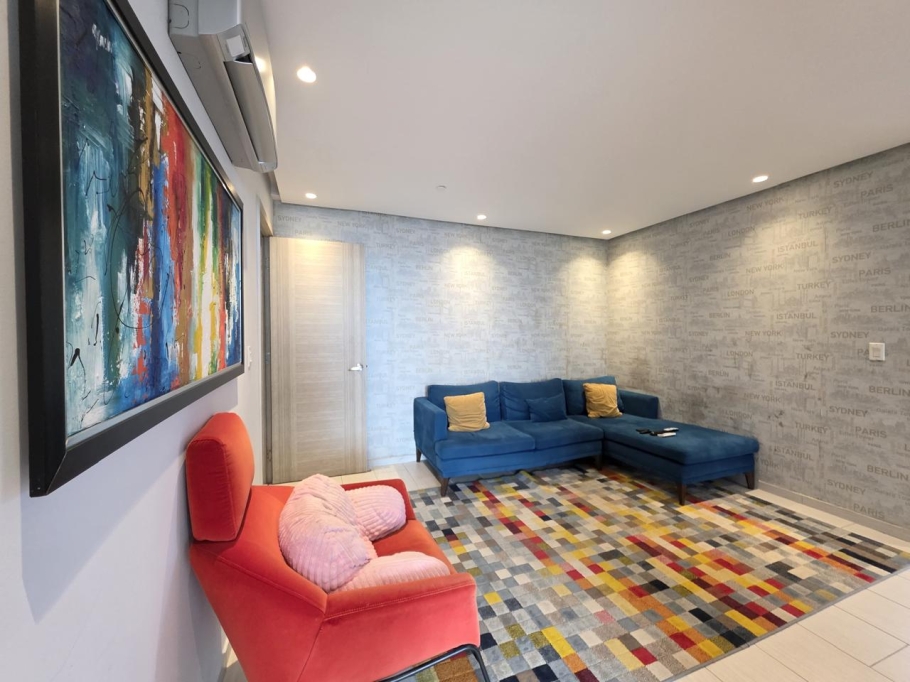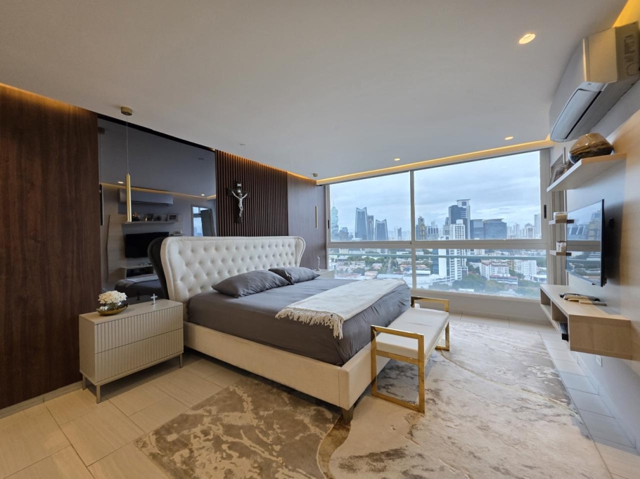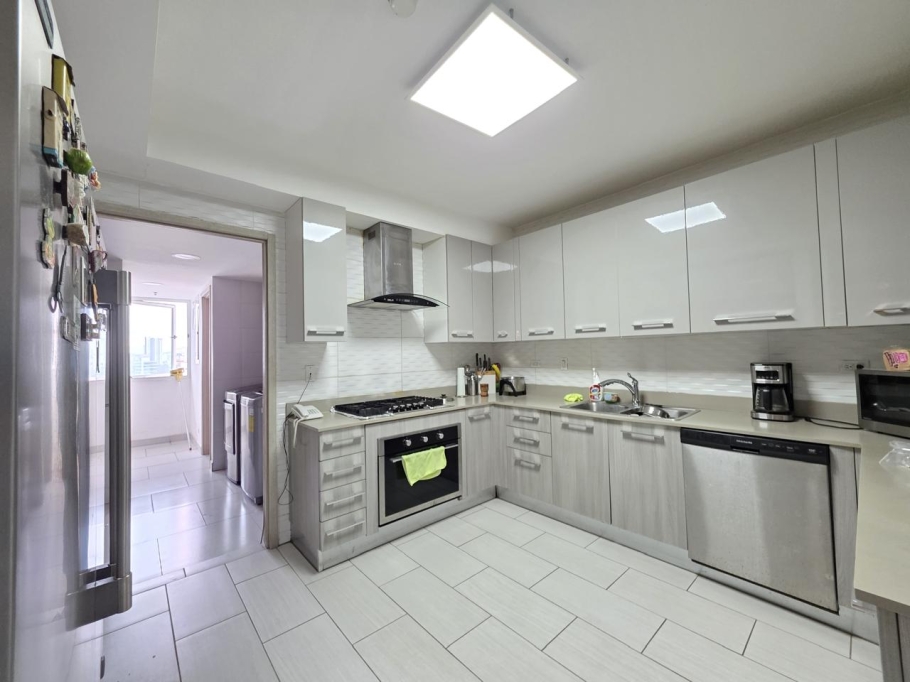 It features 3 bedrooms, each with its own private bathroom, plus a powder room, den, spacious living and dining area, closed kitchen, laundry room, maid's quarters with bathroom, and a balcony perfect for relaxing. It includes 2 individual parking spaces and a storage unit of approximately 7 m² (150 sq ft).