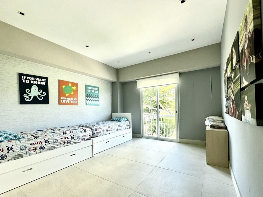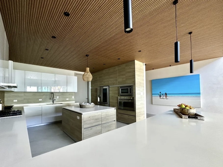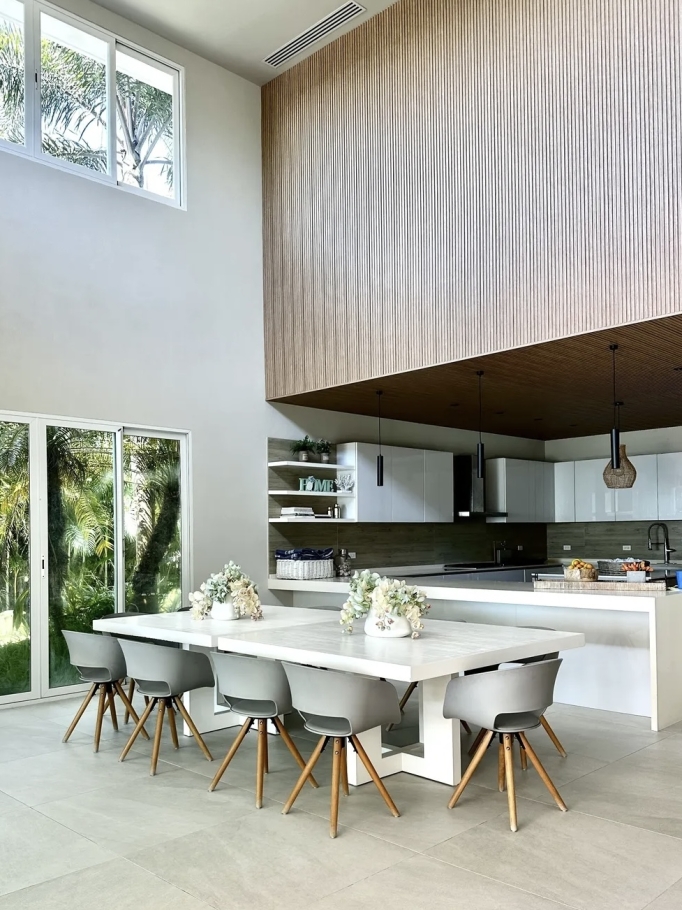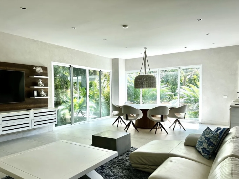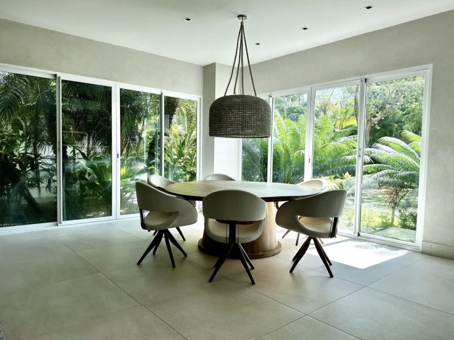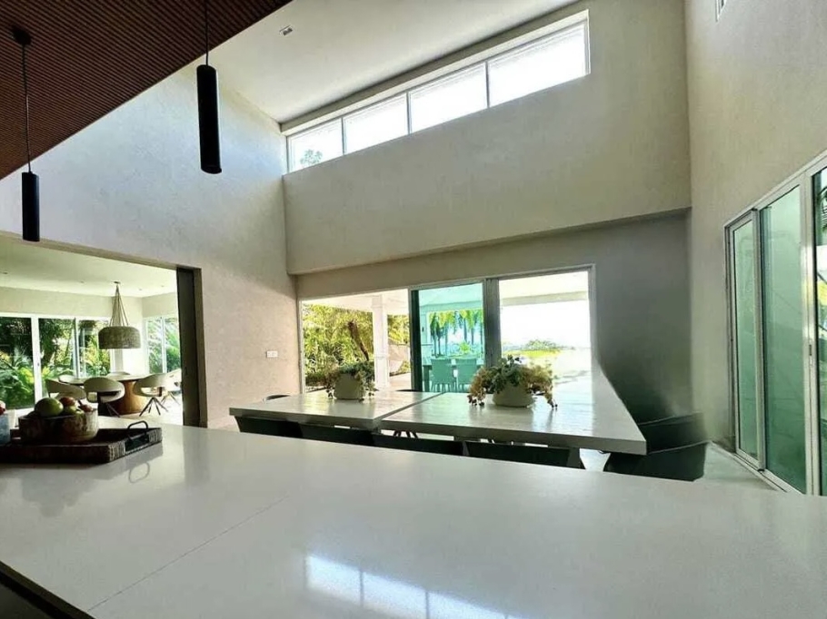 The villa features a contemporary design with bright, open spaces, double-height ceilings, and a layout that promotes natural ventilation and a seamless connection with the outdoors. Its location provides close access to the beach club, sports club, and golf course, combining comfort with an exceptional quality of life.