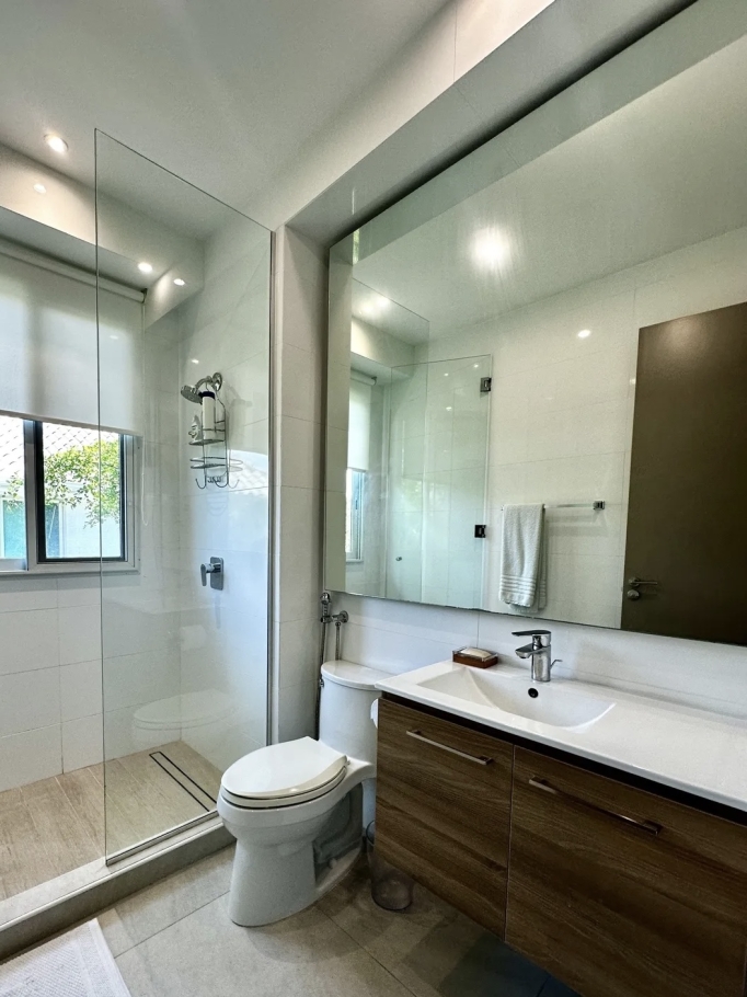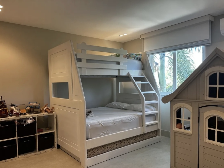 All five bedrooms are located on the upper level, each with a private en-suite bathroom, built-in closets, and a walk-in closet in the master bedroom, ensuring privacy and comfort for the entire family.