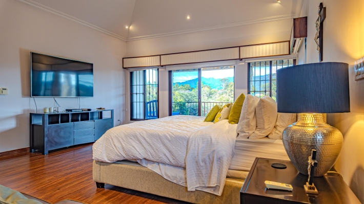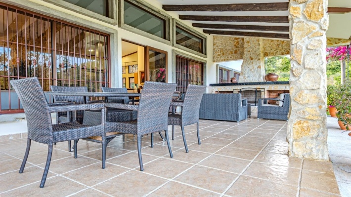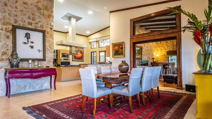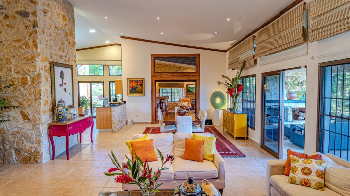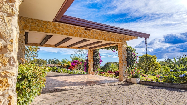Coffee Farm Estate in Boquete, Panama – Santa Lucía, Volcancito Exceptional investment opportunity in Santa Lucía, Volcancito, one of Boquete’s most desirable residential areas. This 28.5-hectare coffee farm sits at approximately 1,300 meters above sea level and is in full production of specialty coffee varieties including Caturra, Catuai, Geisha, Bourbon, Obatá Rojo, and Pacamara. It is the only coffee farm located within the exclusive Santa Lucía residential complex, just five minutes from downtown Boquete. The estate includes a spacious main residence with floor-to-ceiling windows capturing panoramic mountain and valley views, three bedrooms, maid’s quarters, and outdoor living areas. A separate guest house offers two additional bedrooms, along with storage facilities and operational infrastructure. The property enjoys a pleasant year-round mountain climate, exceptional privacy, shaded seating areas, and sunrise and sunset views over the valley. Ideal for continued agricultural use, boutique tourism, or future residential development in one of Panama’s premier highland locations.