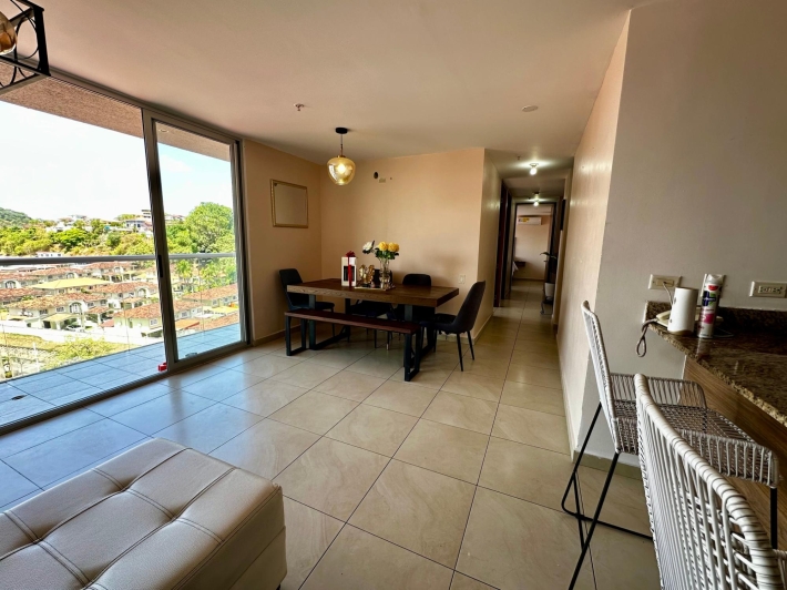Apartment for Sale in Villa Lucre – 3 Bedrooms, Den, Mountain Views and Social Areas. This apartment in Villa Lucre, Panama, is for sale in excellent condition and ready for immediate occupancy. Ideal for families or buyers seeking a quiet residential area with easy access to the North Corridor and close to the Villa Lucre Metro station. The apartment features a spacious living and dining room, a balcony with beautiful mountain views, a modern open-concept kitchen, a guest bathroom, two full bathrooms, two secondary bedrooms, and a master bedroom with a walk-in closet and ensuite bathroom. It also includes a den (perfect for a home office or family room) and an internal laundry room. A storage unit and one parking space are included. The building offers comprehensive social areas: a swimming pool, party room, game room, gazebo, basketball court, and gym. Regarding security and infrastructure, the building has a water reserve tank, generator, elevators, electric gate, communal gas, pump system, and fire alarm system, ensuring peace of mind for its residents. If you're looking to buy a 3-bedroom apartment in Villa Lucre with a den and full amenities, this is an excellent investment opportunity or a great place for your family. Contact us for more information or to schedule a visit.
