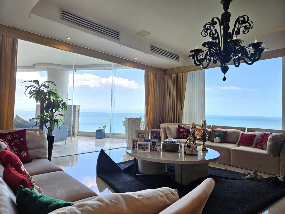 With 525 square meters of living space, this impressive residence features a spacious and well-designed layout, ideal for those who value comfort and privacy. The apartment includes 4 bedrooms, each with its own en-suite bathroom, totaling 5 bathrooms, as well as a refined family room perfect for relaxed gatherings. The main living and dining areas flow seamlessly onto a generous balcony, where you can enjoy breathtaking panoramic ocean views.