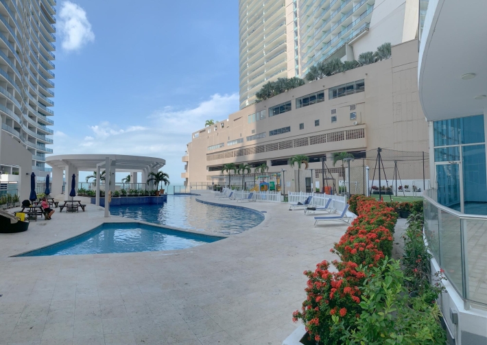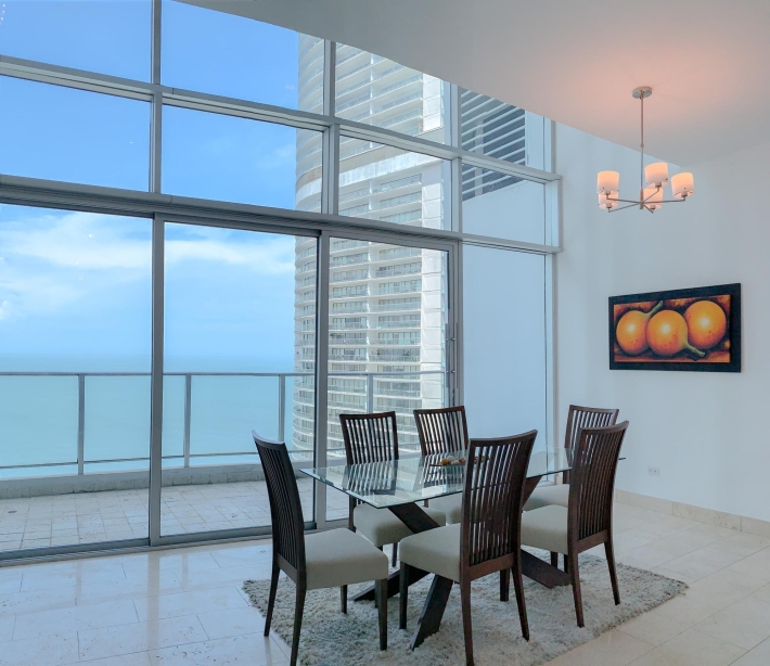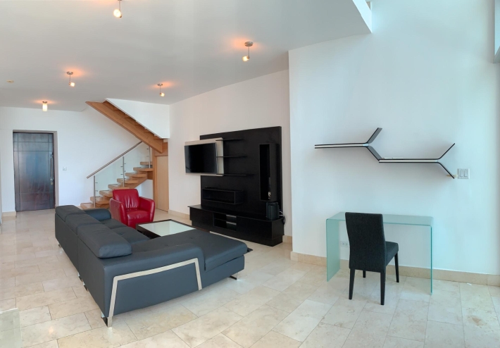 For sale or rent: a spectacular loft-style apartment in PH Pacific Village, located in Punta Pacifica. The apartment is distributed over two levels and offers a spacious, double-height living and dining area with excellent natural light, ocean views, and access to a balcony. It also features a spacious master bedroom with an integrated sitting area, a full bathroom, and a walk-in closet, providing a comfortable, private, and sophisticated ambiance. Additionally, it includes a guest half-bathroom, laundry room, two parking spaces, and a storage unit. Pacific Village boasts a complete social area that includes a swimming pool for adults and children, a fully equipped gym, a spa with a jacuzzi, sauna, and Turkish bath, a game room, a soccer field, green areas, a luxurious double-height lobby, a security gate, and 24/7 surveillance. An excellent option for those seeking a prime location, modern design, and high-end amenities in one of the city's most exclusive areas.