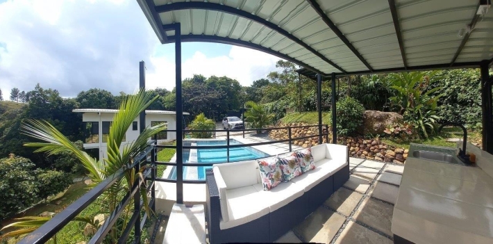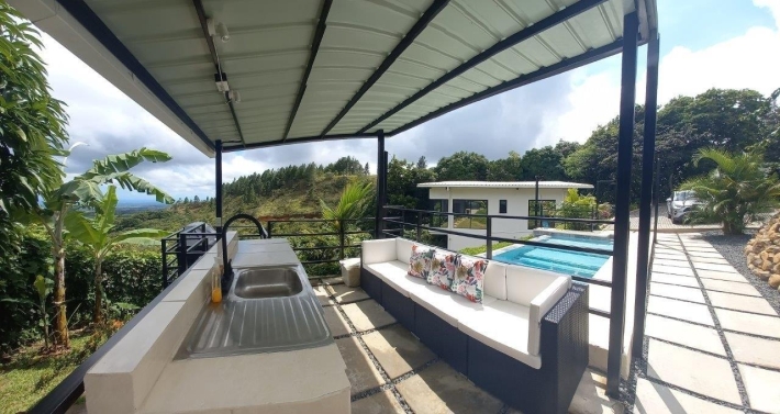 San Carlos Ocean View Villa is built with top quality and high standards. Also, the list price is many thousands below replacement value. Furthermore, the view is just amazing, hard to find from a house that is move in ready with the comfort this villa offers. You will love the ocean and sunrise from this move in house near Coronado. Moreover, the open design makes it very cozy. The views from the swimming pool and BBQ area are just stunning also. Very important, a beautiful deck overlooking the forest and creek will make you blend with nature hearing the water and the birds, it is a pleasant spot for morning coffee and breakfast or just pure relaxation. Separate from the house and totally independent, the property includes a one-bedroom guest house surrounded by beautiful trees. Also, this guest house will have a wraparound terrace which is in the planning and soon to be added. Other Features: •Finished in 2023 •Queen size murphy bed with ocean view •Large Storage •Lovely gardens •Water storage tank •Pool lights of different colors •Security cameras •High quality furniture •Totally Gated •Nature trail inside the property •Remote control gates •Granite counters in kitchen and Bathroom •Power generator •Drip Feed irrigation system that collects water from the spring. •Anti seismic foundation About La Laguna de San Carlos This beautiful villa is on the road to La Laguna de San Carlos, at just 20 minutes’ drive (14 kilometers or 8.7 miles) from Coronado Beach. Just a few more minutes north, you find La Laguna (The Lagoon), a mountain community full of beautiful mountain.