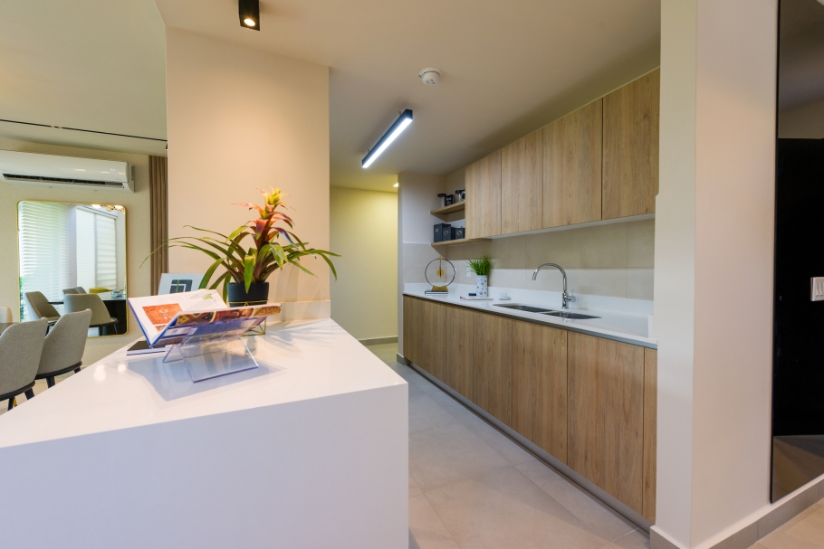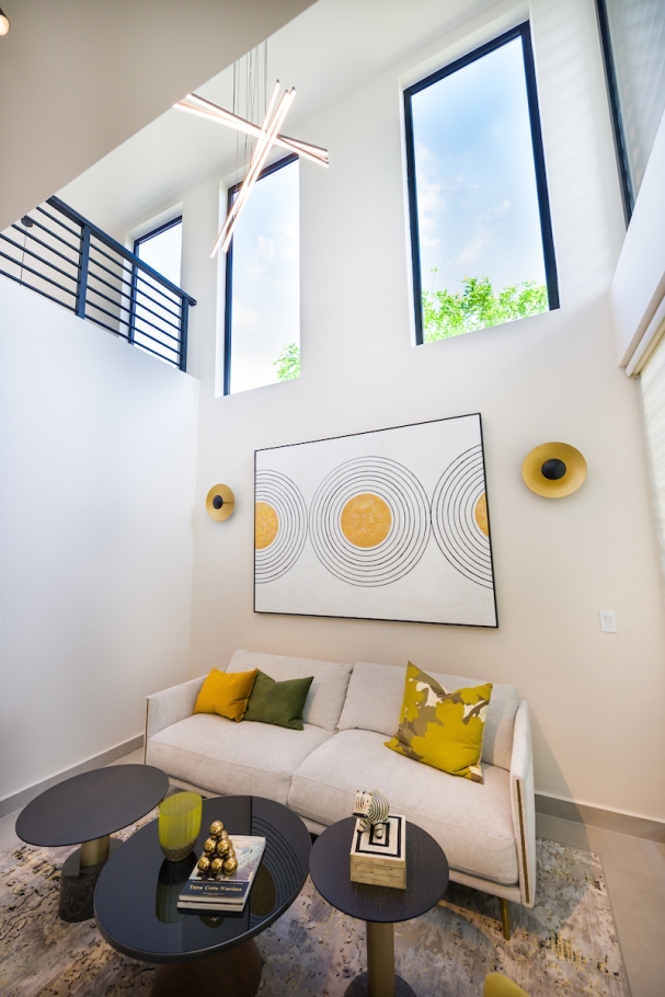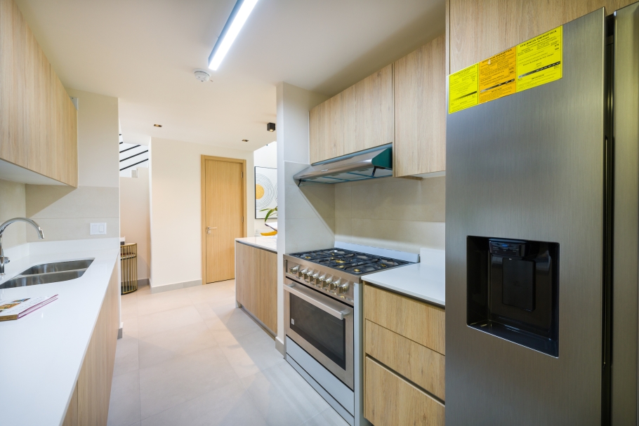 Imaterra offers a sustainable lifestyle proposal with 160 residential units divided into different models, all featuring high-quality finishes, such as Spanish porcelain flooring, quartz countertops, and Grohe fixtures.