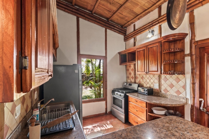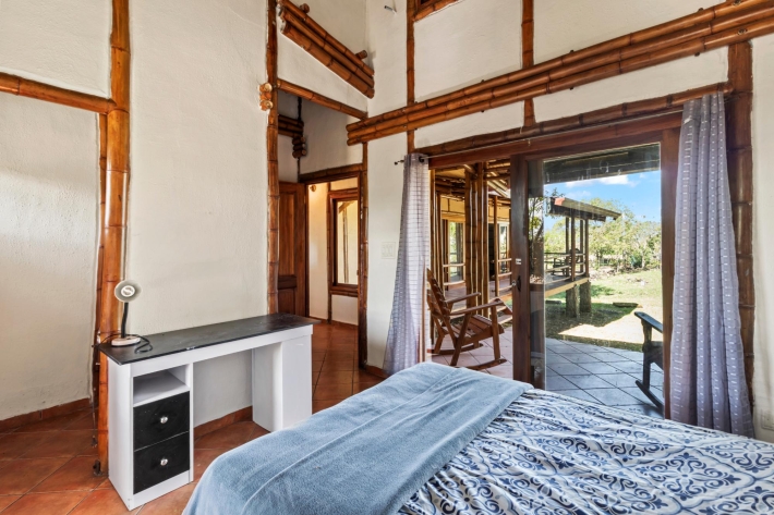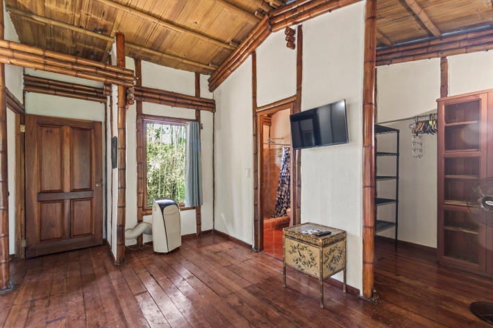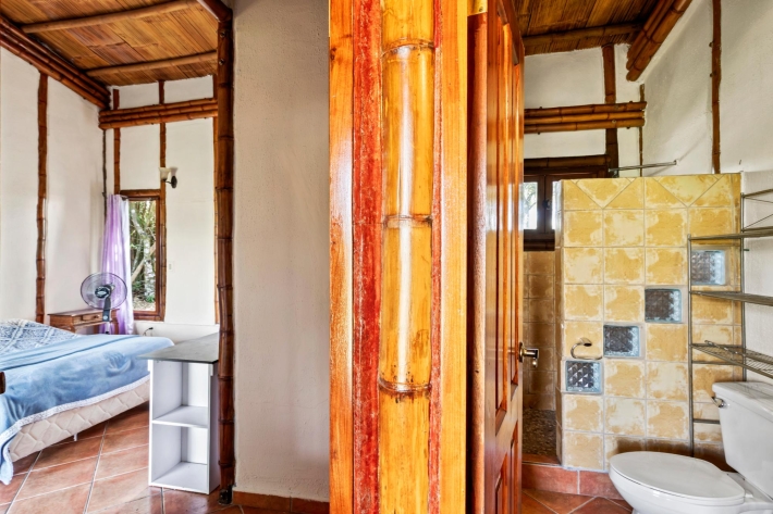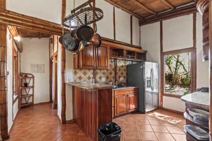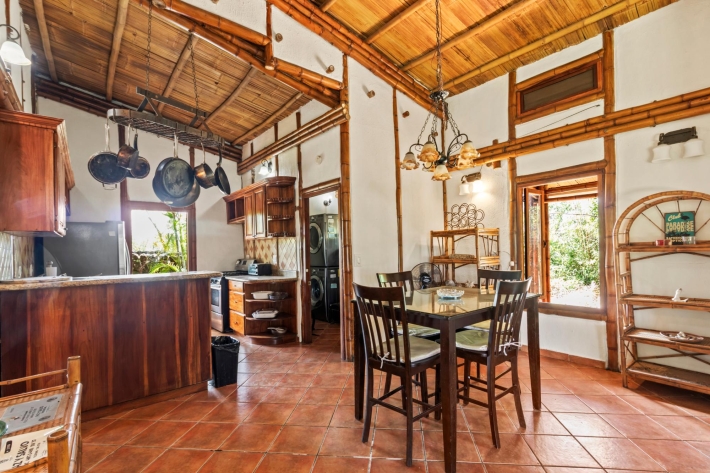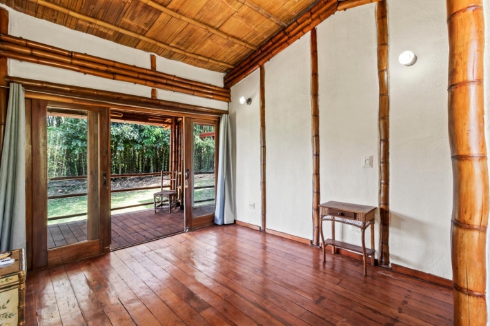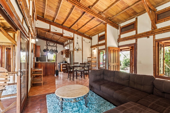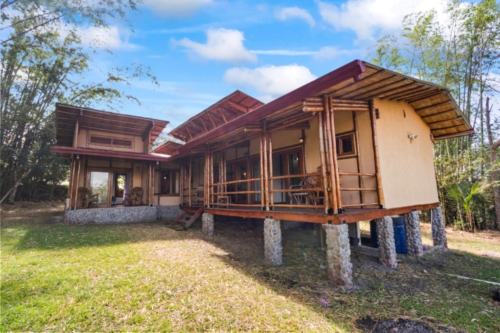 Discover a unique blend of sustainability and serenity in this charming eco-friendly bamboo home located in the desirable area of Alto Boquete. This thoughtfully designed 2-bedroom, 2-bathroom residence offers a warm, natural aesthetic that harmonizes beautifully with its lush surroundings. Built as an eco-system home, the property embraces sustainable living while providing comfort and style. The interior features an open and airy layout, allowing natural light and fresh mountain breezes to flow throughout the space. Step outside and enjoy beautiful grounds, perfect for relaxing, gardening, or entertaining. The property boasts stunning panoramic views of the surrounding mountains and greenery, creating a peaceful retreat just minutes from town. Whether you're looking for a full-time residence, vacation getaway, or investment opportunity, this one-of-a-kind bamboo home offers a rare chance to live in harmony with nature without sacrificing convenience.