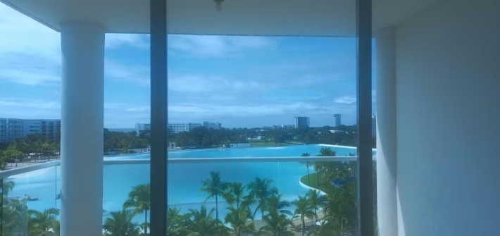 Apartment for sale in Ph Waterways in Playa Blanca, measuring 87.30m2, has 1 bedroom with bathroom, guest bathroom, living room and kitchen, balcony facing the pool, great ocean view, live and enjoy in one of the best beach locations, access to restaurants, supermarket, and beach.