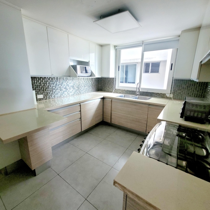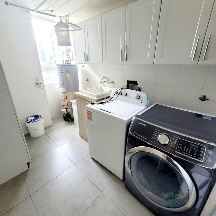 310 sq m apartment in an excellent location. 3 bedrooms, 3.5 bathrooms, living room, dining room, kitchen, laundry room, and maid's quarters. Living room, dining room, foyer. A den that could be converted into 2 more rooms or bedrooms. 2 parking spaces. Building T