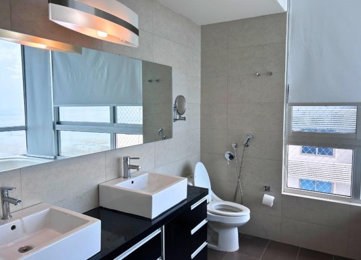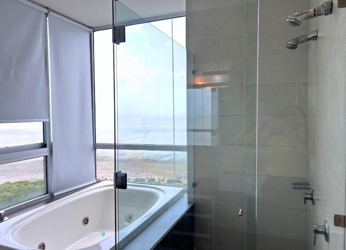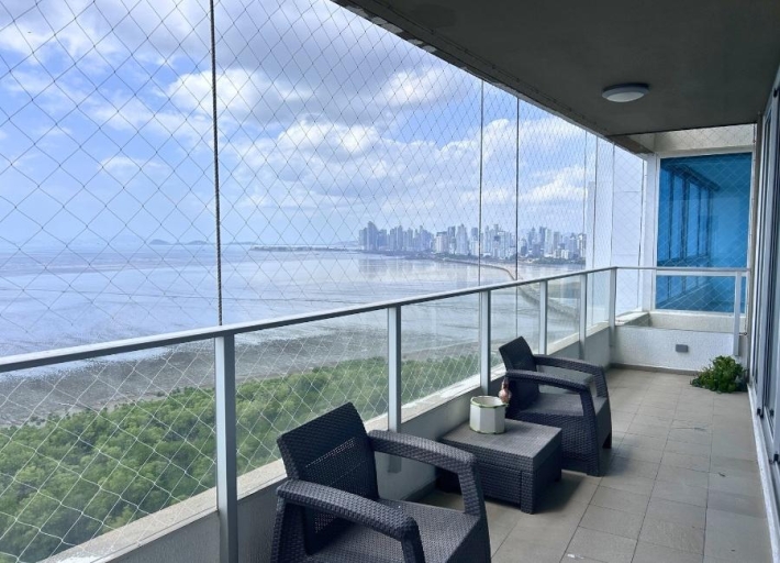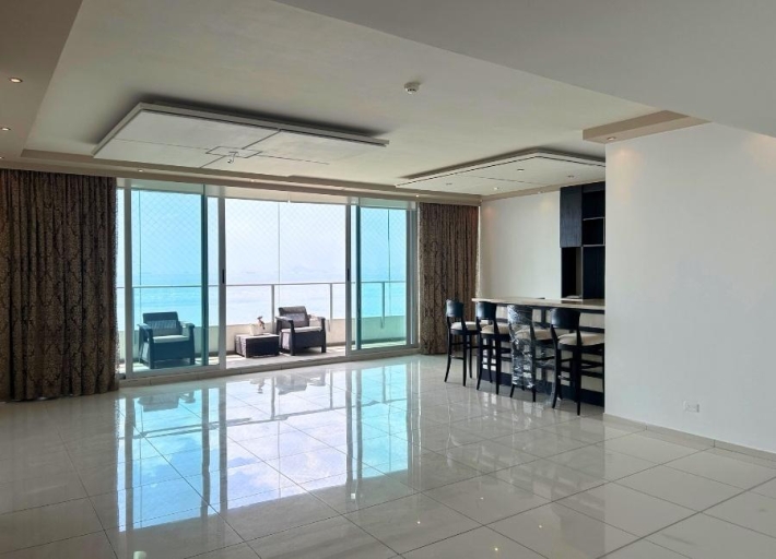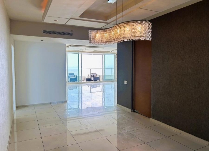Spacious 299.01 m² apartment located in the exclusive Altamar del Este building, beachfront in Costa del Este. The property features a large balcony, three bedrooms each with a private bathroom, a guest bathroom, a living room with an elegant built-in bar ideal for entertaining, a separate dining room, a family room, a kitchen, a laundry room, and a maid's quarters with a bathroom. It has central air conditioning in the living and dining areas and split air conditioning units in the other areas of the apartment. Includes three parking spaces and a storage unit, providing greater convenience and storage space. The building offers excellent amenities, including an oceanfront pool, a fully equipped gym, an events room, sports courts, 24-hour security, and a backup generator. Located near shops, restaurants, banks, and with easy access to the Corredor Sur highway.