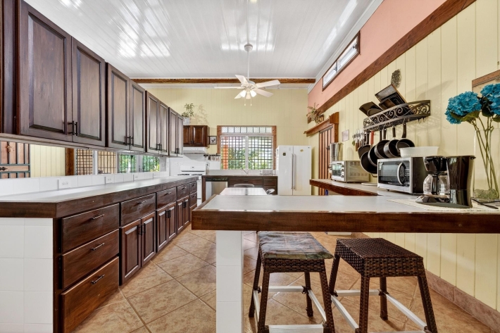 Located in Chiriquí – Potrerillos Arriba, this versatile and fully equipped property offers space, functionality, and incredible value. Set on a 1,932 m² fully fenced lot with cyclone fencing, the home enjoys a peaceful setting with views of Volcán Barú and convenient access to both David and Boquete (approx. 35–40 minutes to David and the airport). A comfortable and well-designed home featuring: •3 bedrooms and 3.5 bathrooms •Open-plan kitchen with spacious cabinetry and dishwasher •Separate pantry room for additional storage •Fully furnished (excluding small personal items) •Fiber optic WiFi, cable TV, and hard phone connection •Primary suite with walk-in closet and en-suite bathroom including bathtub •Second bedroom with en-suite bathroom and bathtub •Additional bedroom can be used as office space plus guest bathroom Living & Entertaining Spaces •60.04 m² covered upper terrace, currently set up with hammocks and stunning views — ideal as an entertainment or relaxation area (can be enclosed to create an apartment) •Downstairs basement/storage area (52.96 m²) with ventilation, including spare tiles, water tank, and propane bottles •Quiet surroundings with a comfortable year-round climate Workshop / Garage / Guest Space •93.73 m² detached workshop – perfect as a garage, workshop, or “man cave” •Includes two additional rooms with bunk beds for extra guests or workspace •All tools and equipment included Parking •6 covered carport spaces •Additional parking available on the property Outdoor Features & Land •1,932 m² property, fully fenced and secure •Beautiful garden with mature fruit trees, including: oHess avocado oBanana