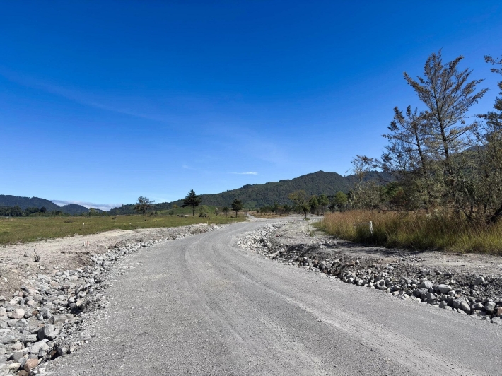Lot E05 offers a 2,813.34 m² flat parcel within the first phase of a ready-to-sell land subdivision in Volcán, Chiriquí. The lot maintains a regular shape and open views toward Volcán Barú, with direct access from the internal gravel road. At approximately 1,500 meters above sea level, Lot E05 benefits from a cool mountain climate year-round. The property sits 3 km (about 8 minutes) from downtown Volcán and 1.2 km from the paved road. Designated project green areas include coffee-planted land and a developing vineyard, with grape plants already established. Water and electricity are available, and the project does not include an HOA.