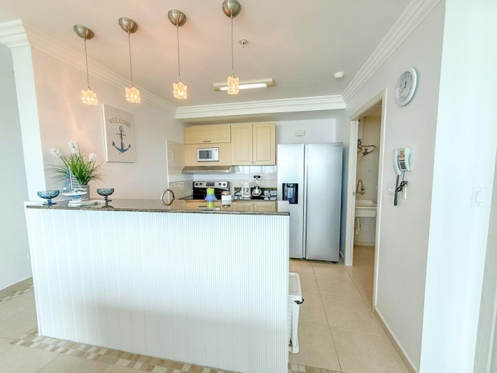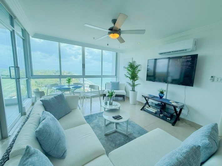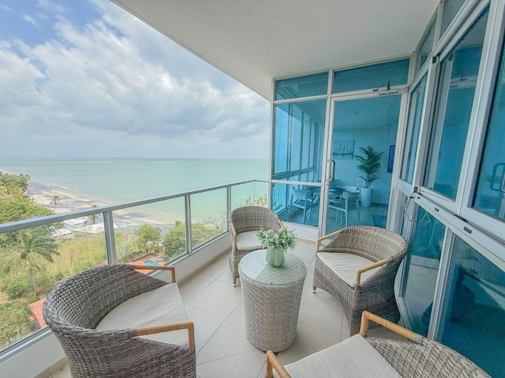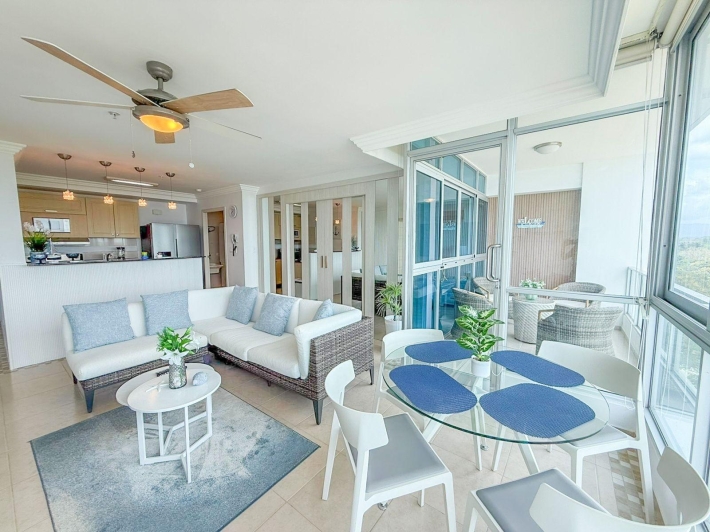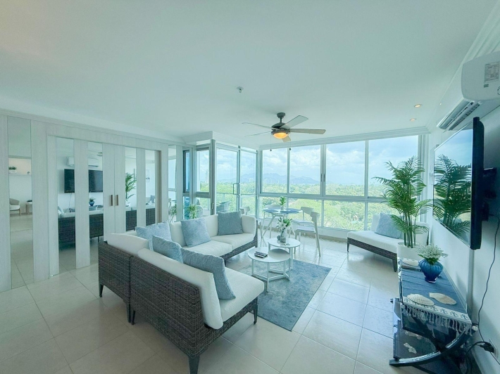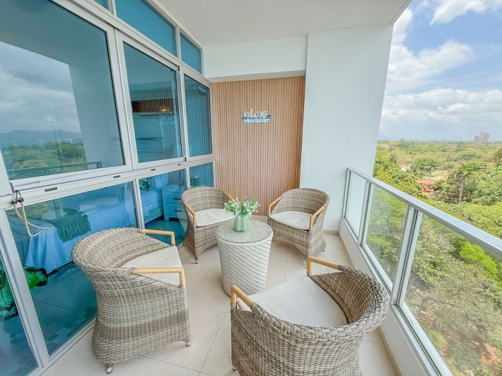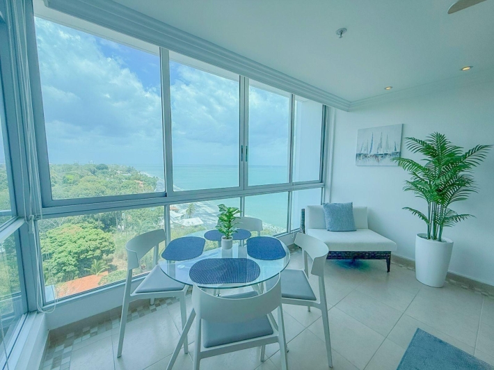Apartment for rent located in Coronado Bay, in Playa Coronado, one of the most well-known and developed beach areas on Panama’s Pacific coast. The apartment offers comfortable and well-decorated living spaces, including a living and dining area, kitchen, and a balcony with ocean views, perfect for enjoying the coastal surroundings. Its inviting atmosphere makes it a great option for those looking to live or spend time near the beach. Coronado offers a wide variety of restaurants, supermarkets, shops, and services, along with convenient access to the beach and other attractions in the area.