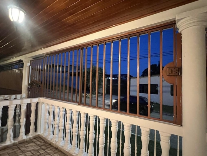 General details of the property: Total area: 333.61 m² Bedrooms: 4 (including master bedroom with private bathroom) Bathrooms: 4 full bathrooms + 1 guest half bathroom Parking: 3 Kitchen: 1 (with granite countertops, double stainless steel sink and MDF furniture) Living and dining room Study / office Laundry room: 1 Rear storage room: 1 Enclosed rear terrace Front portal Additional features: Tile floor throughout the enclosed area Gypsum ceiling inside and PVC on the terrace Zinc roof Sliding windows Block walls plastered and painted on both sides Bathrooms with imported fixtures and tile cladding up to the ceiling Portal and parking area with tile floor and tongue and groove wood ceiling Electric gate for greater security and comfort Sale price: B /. 200,000.00 A property with generous spaces, excellent distribution and strategic location in the city. Don't miss this opportunity! Schedule your visit and see the home you and your family deserve.