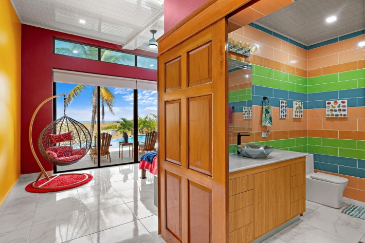 Experience luxury coastal living in this stunning contemporary beachfront home located in the exclusive gated community of The Villas at Playa Barqueta. Just 35 minutes from David on a newly paved road, this exceptional property offers privacy, security, and breathtaking oceanfront views. This residence sits on a spacious lot and features 4 bedrooms and 4.5 bathrooms. Designed with an open-concept layout, the home showcases floor-to-ceiling, wall-to-wall reflective privacy glass doors, allowing for uninterrupted views of the Pacific Ocean from every room while maintaining comfort and seclusion. The gourmet kitchen is a chef’s dream, equipped with top-of-the-line appliances including: •Double ovens •Electric range •Dishwasher •Microwave •Ice maker •Multiple refrigerators and freezers High-end finishes are found throughout, including elegant marble tile flooring and custom teak and mahogany cabinetry. Step outside to your private 5-foot-deep infinity pool, perfectly positioned to take in the sweeping views of Playa Barqueta and the Pacific horizon—ideal for entertaining or relaxing in total tranquility. Additional features include: •Sold fully furnished •Alarm and security system •Automatic propane Generac generator •PVC ceiling •Large pantry •Newly constructed (only 3 years old) Conveniently located near the airport, shopping, and essential services, this home offers the perfect blend of luxury, comfort, and accessibility. A rare opportunity to own a one-of-a-kind beachfront retreat in one of Chiriquí’s most desirable coastal communities.
