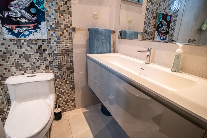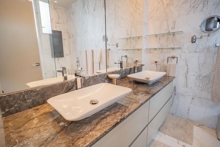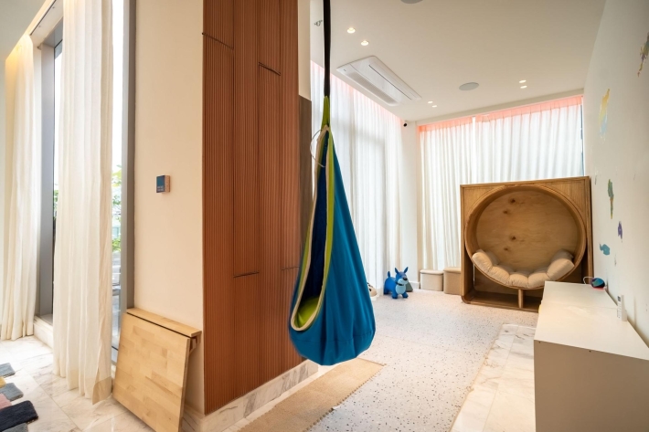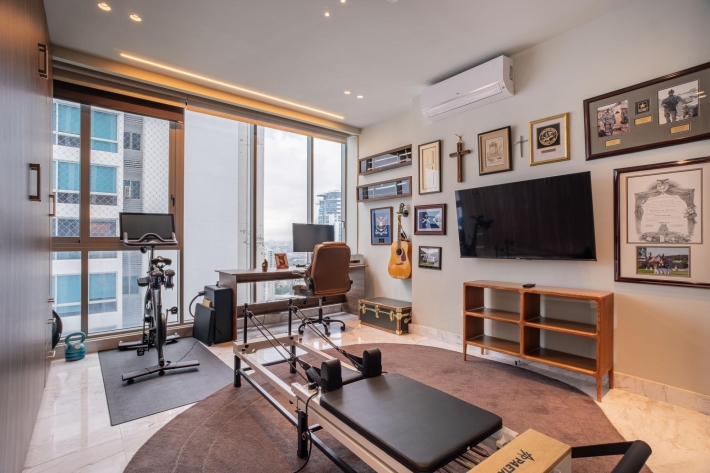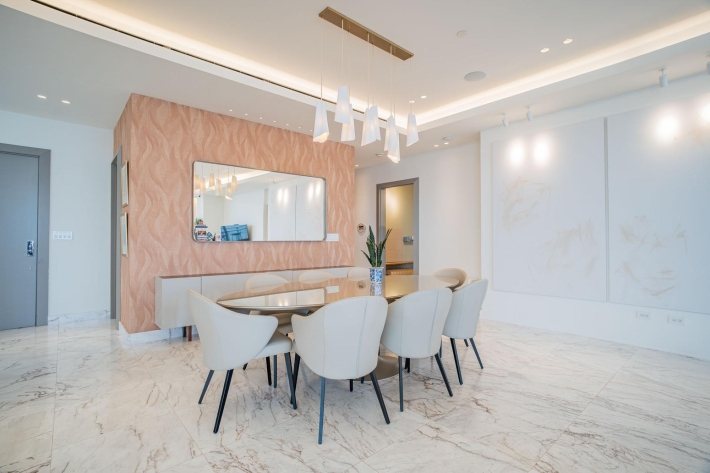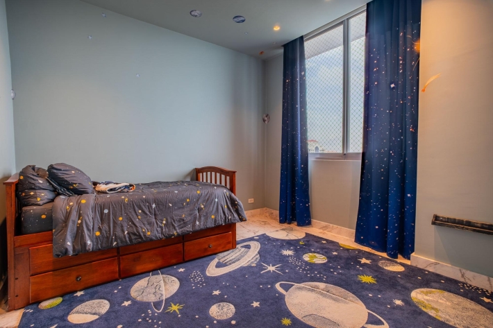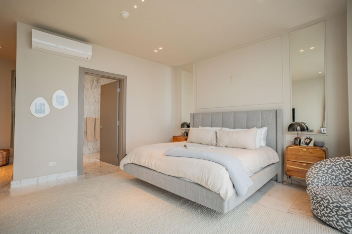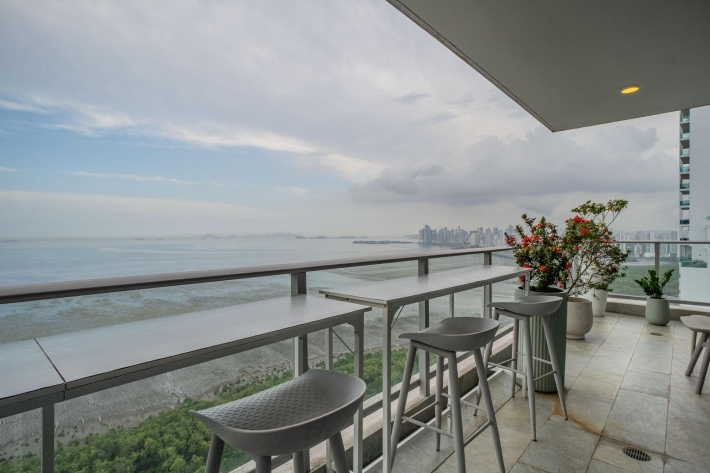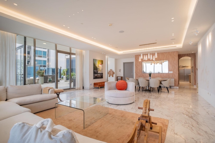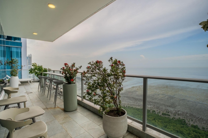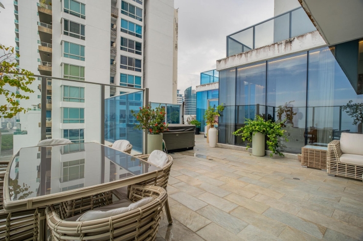 About the Apartment Discover an extraordinary residence in Regalia — a sprawling 475 m² luxury home thoughtfully designed for modern family living and sophisticated entertaining. This exclusive unit occupies a full floor, offering maximum privacy with its own private entryway and built-in storage closets directly at the foyer. Step into an expansive layout that elevates every aspect of daily life. The residence features four generously sized bedrooms, including a second master suite with a luxurious spa-style bathroom, ensuring comfort and serenity for every member of the household. An additional maid’s quarters provides functional service space. At the same time, a flex room — currently styled as a baby’s room — can effortlessly convert into a home office, den, or private study to suit your lifestyle needs. The entire house has a built-in Wi-Fi system (UNIFI) throughout, including Sonos in every room. The heart of this home is its oversized balcony with a private jacuzzi, perfect for relaxing, entertaining, or enjoying panoramic views of the city and ocean horizon. The open plan seamlessly connects the living and dining areas, creating an inviting space for both everyday living and special gatherings. The Social Area of Regalia truly stands out for families and friends alike. For kids, the indoor and outdoor playgrounds are a plus, with the huge water slide a real show stopper! This residence also includes four dedicated parking spaces, one storage unit, and comes semi-furnished with discerning design touches throughout, providing an effortless, near turnkey experience for luxurious city living.