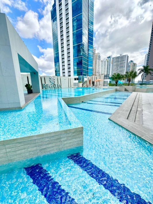 Exclusive 301 m² apartment located in the prestigious PH Regalia, one of the most modern and complete beachfront residential developments in Costa del Este. The property offers an excellent layout with spacious rooms and high-quality finishes: 3 bedrooms, each with its own private bathroom, 3.5 bathrooms in total; spacious living and dining room with excellent natural light; family den that can be closed off for added privacy; kitchen with breakfast area; laundry area; maid's quarters with bathroom; balcony with spectacular views, ideal for enjoying sunsets and natural ventilation; floor-to-ceiling windows that maximize natural light and panoramic views; 2 parking spaces. This apartment is characterized by its fine finishes and a functional layout ideal for family life. PH Regalia offers amenities designed for the comfort and entertainment of the whole family: Majestic double-height lobby with glass door Spacious social area with adult pool Children's and toddler pool with slide Outdoor and indoor children's play areas Game and entertainment room Modern and fully equipped gym with yoga area Racquetball court Gazebo 4 high-speed elevators Full capacity power generator Storage units available for sale And much more…