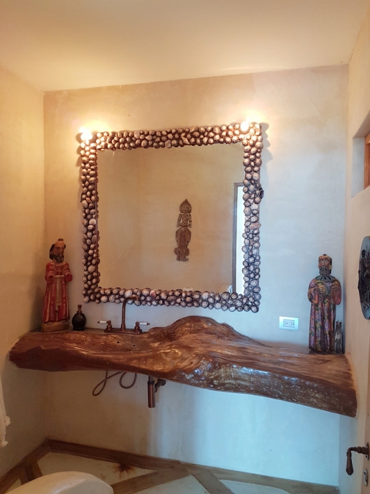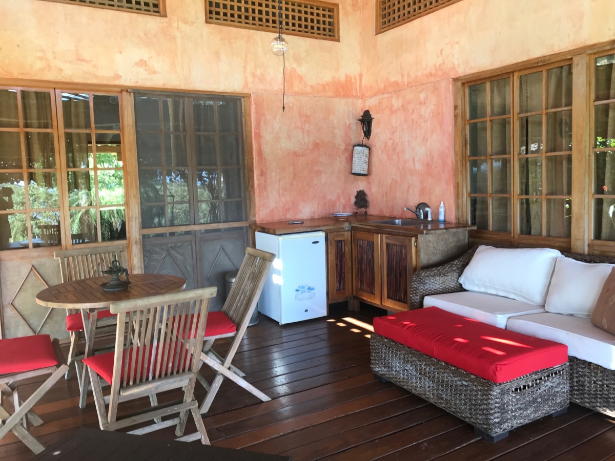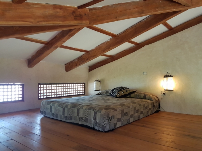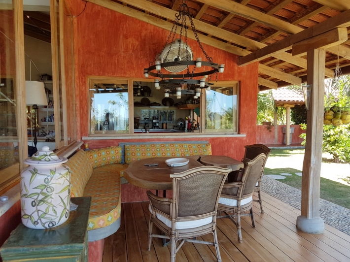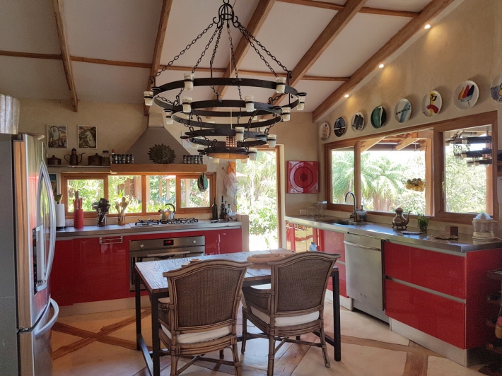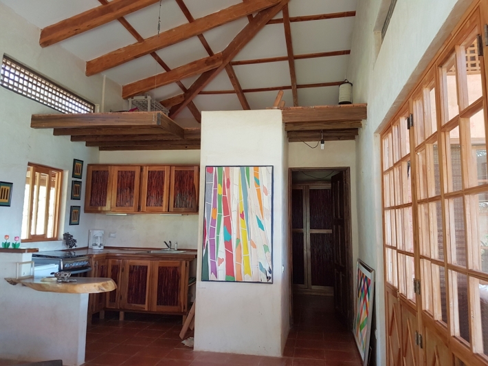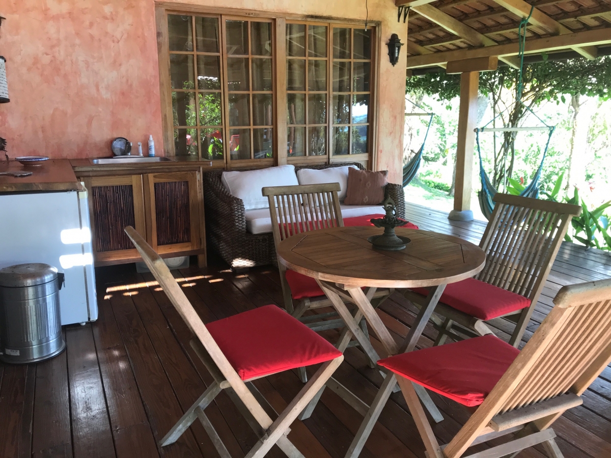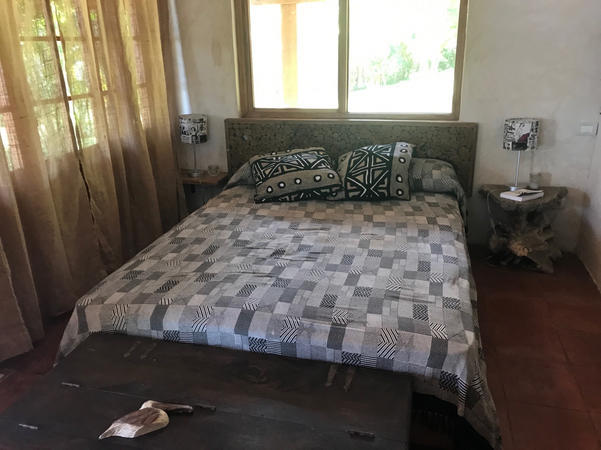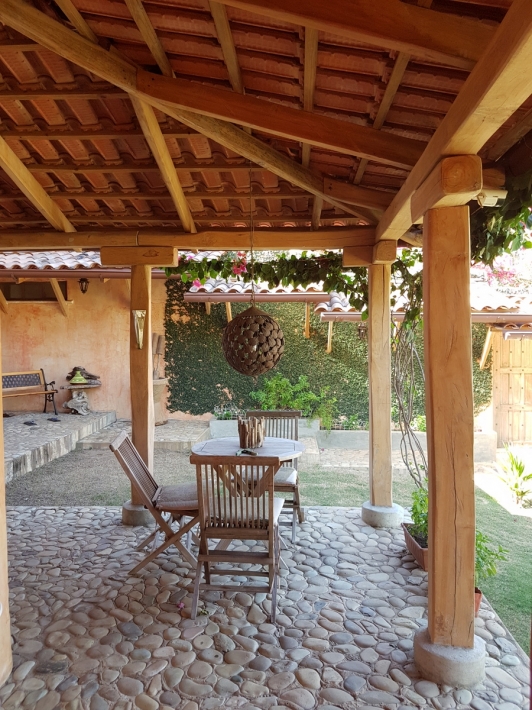 There are various places to relax, eat, read or receive. Dinner can be served in the kitchen, outside on the covered terras or under the open sky between the main house and annex. Close to the pool is the b.b.q. or campfire! Sprinkler-system in the gardens. Papaya-, orange- and lime-trees plus banana- and plantain plants at the back of the house. A large greenhouse for vegetables and salads for a healthy life; all organic.