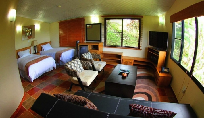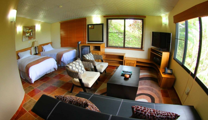 4 luxury cabanas: A tropical pathway takes you to your private air-conditioned 600 square foot cabana, beautifully appointed with all the comforts of a world-class resort in a remote jungle atmosphere. The two-bedroom open-plan design includes a spacious luxury bathroom, fully equipped living area and private terrace, suitable for a maximum of four people.