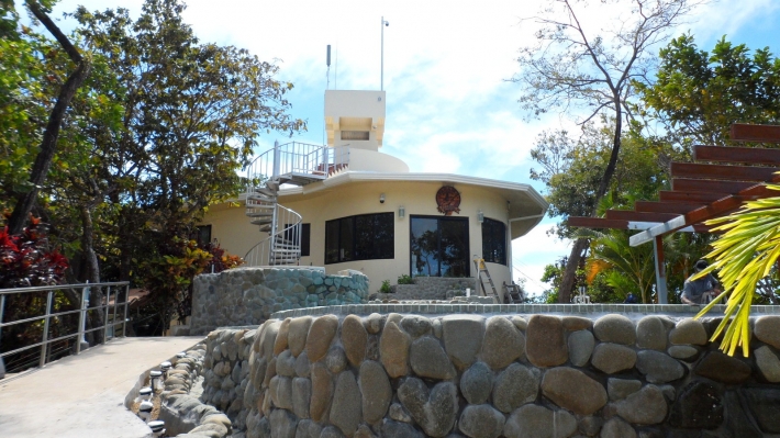 The circular restaurant / clubhouse sits 100 metres above the ocean and offers unforgettable views of the open pacific and the inland waterway. It is reached by a custom-built electric tram from the dock.