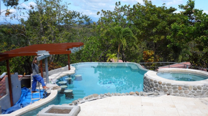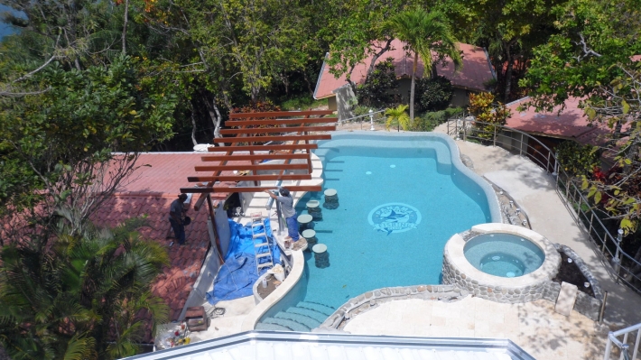 In addition there is a floating dock with a led illumination walkway. The floating dock needs to be replaced due to age however the concrete dock walkway leading to tidal walkway is new and covered with luxury Coralline tiles, complete lighting system from dockside to restaurant with led lights and partial stain steel railing, three concrete block dockside storage rooms with electric doors and three chamber septic system have been built for 8 additional cabins.