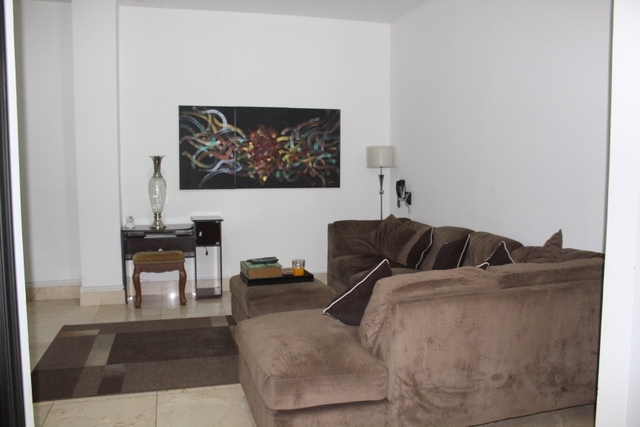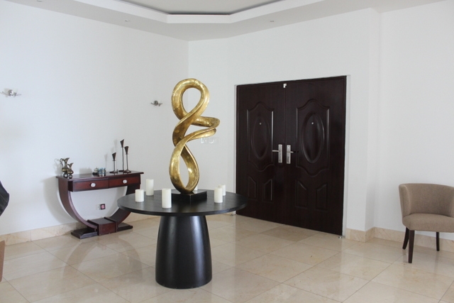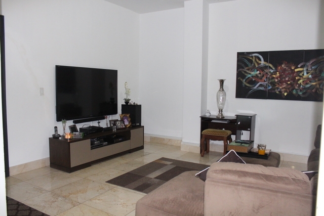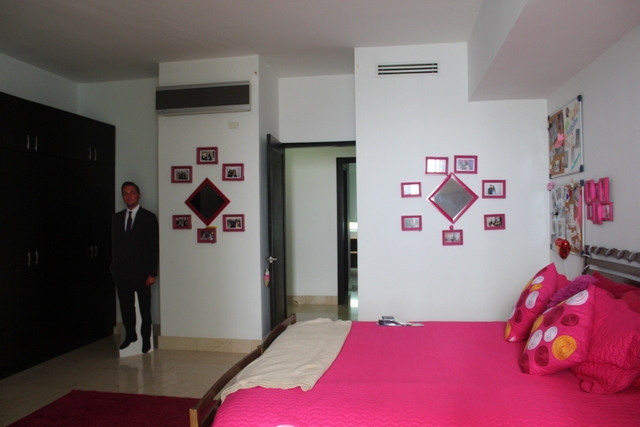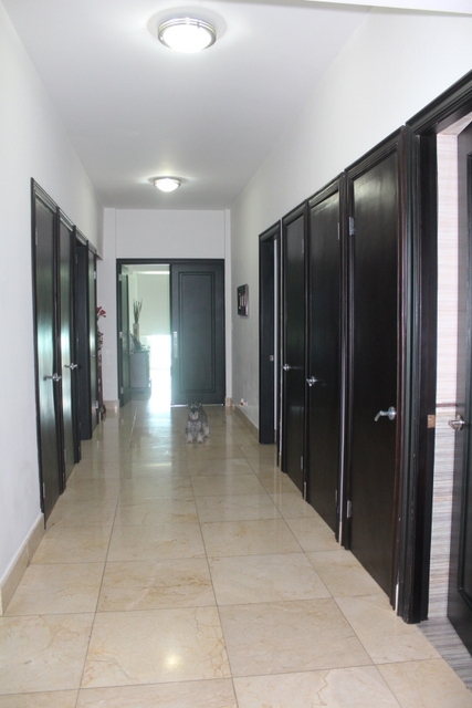 This is a four-bedroom apartment. It has marbled flooring and smooth-cement finishing on the walls. The main bathroom has marble on the walls and floors. The other bathrooms have imported tiles on walls.
