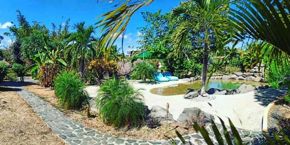 Usted olvidara que hay un mundo afuera, una vez dentro del complejo. no le tomara trabajo absorber la tranquilidad del lugar, lleno de abundante naturaleza y arboles de frutas exóticas como pitahaya, carambolas, plátanos, tamarindos y otros que atraen grandes cantidades de colibríes y demás pájaros nativos del área, además de mariposas de color azul, de nombre: morpho.