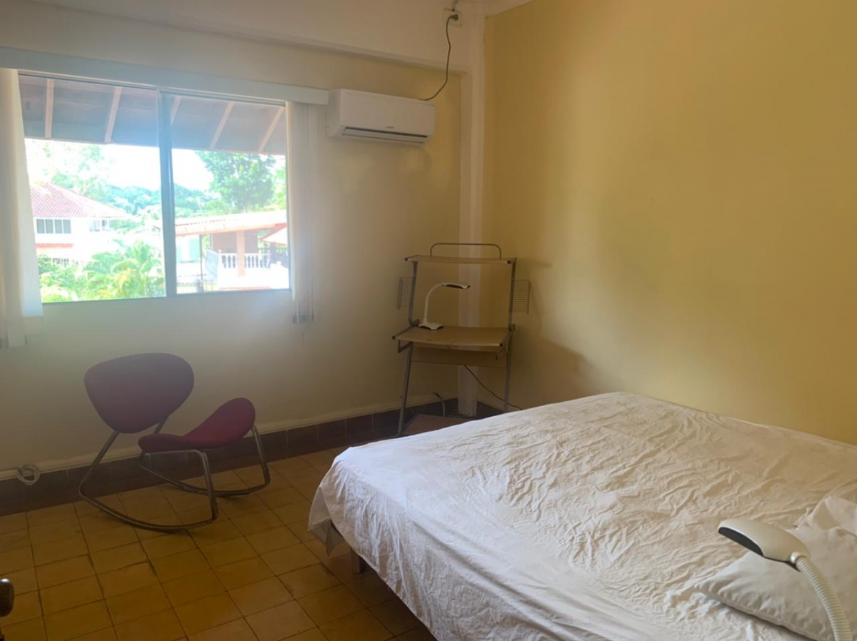 La casa cuenta con 3 recamaras espaciosas, totalmente amuebladas, AC en habitacion, 1 baño completo, 1 baño de visitas, cocina (totalmente equipada con nevera, estufa, tostadora, platos, lavadora, secadora, etc), comedor con mesa y sillas para 6 personas, sala espaciosa con 3 sofas y AC, mesa de centro, TV de 36” con servicio de cableonda, terraza espaciosa con mesa de 4 sillas con vistas al jardin donde uno puede apreciar las iguanas, ñeques, pajaritos, y flora y fauna de los arboles, con 2 estacionamientos techados. La casa esta ubicada en Albrook, una barriada muy linda de la zona del canal, muy cercano al Albrook Mall, Terminal de Metro, Terminal de Buses, Aeropuerto Regional Marcos Gilabert, oficinas del gobierno, hospitales, bancos, farmacias, y corredores para facil aceso a todas partes de la ciudad. Albrook es una de las barriadas mas seguras de Panama, con mucha seguridad en el area ya que la Embajada de Estados Unidos entre otras instituciones esta muy cercano.