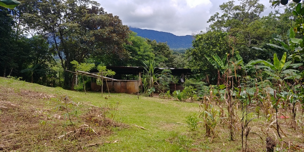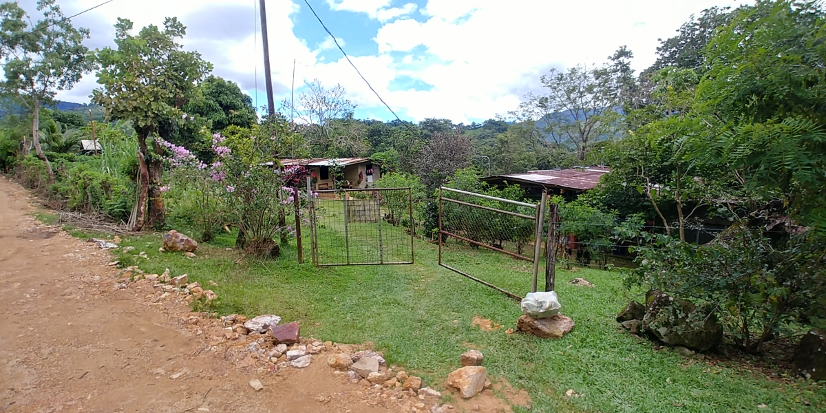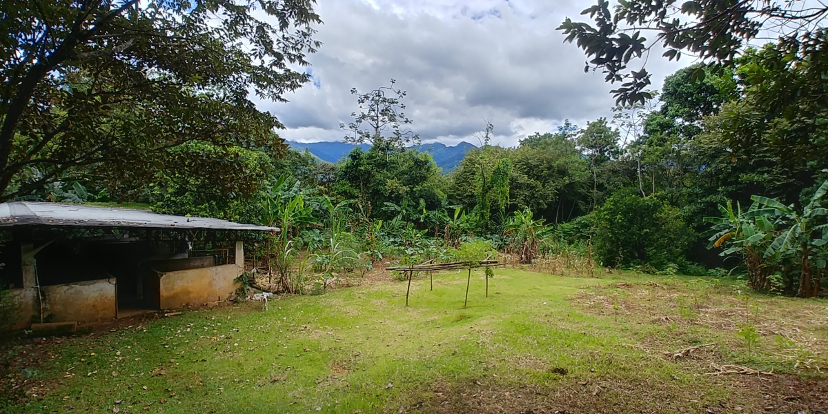 El terreno está bordeado en 2 lados por un pequeño río en cascada lo que muestra que el terreno es inclinado en partes.. Tiene varios tipos diferentes de estructuras (casa de caña, tienda / granero, corrales de animales) con un total de casi 5000 pies cuadrados de techos de metal. Hay una magnífica vista de las montañas y del Parque Nacional que rodea el pueblo en tres direcciones.