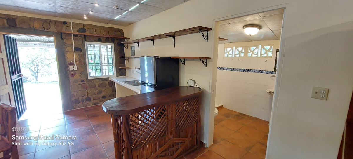 La casa tiene 27 m² construidos, un dormitorio, un baño, lavadero independiente y terraza exterior con vistas a la montaña. La casa tiene electricidad y su propio sistema de agua, que necesita una revisión o la excavación de un pozo.