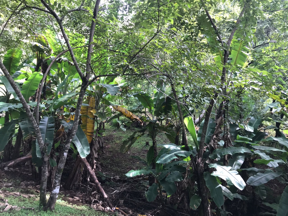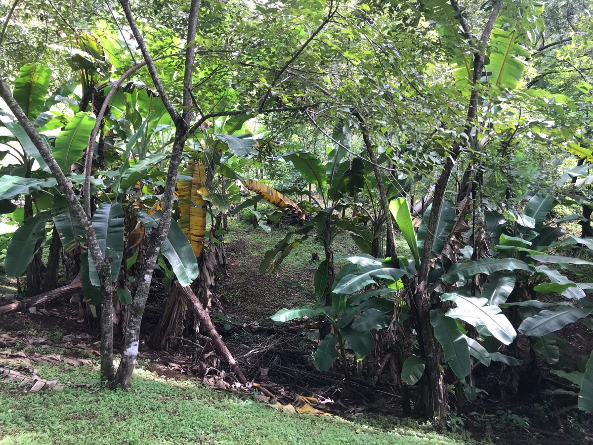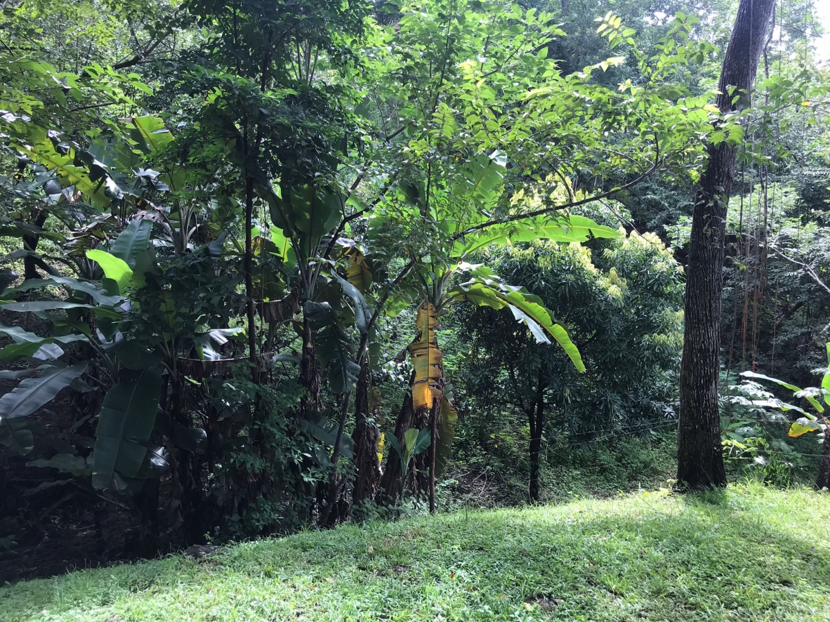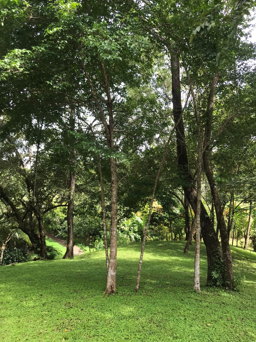Los árboles altos dan carácter, sombra y fresco, con un stand de árboles de plátano a una esquina y un arroyo que corre suavemente cerca. El terreno se ha mantenido durante los últimos diez años, con una valla de alambre que delimita la frontera.