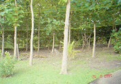 La propiedad esta plantada con varios árboles de fruta y también una sección plantada con 400 arboles de teca y 200 palmas de coco.