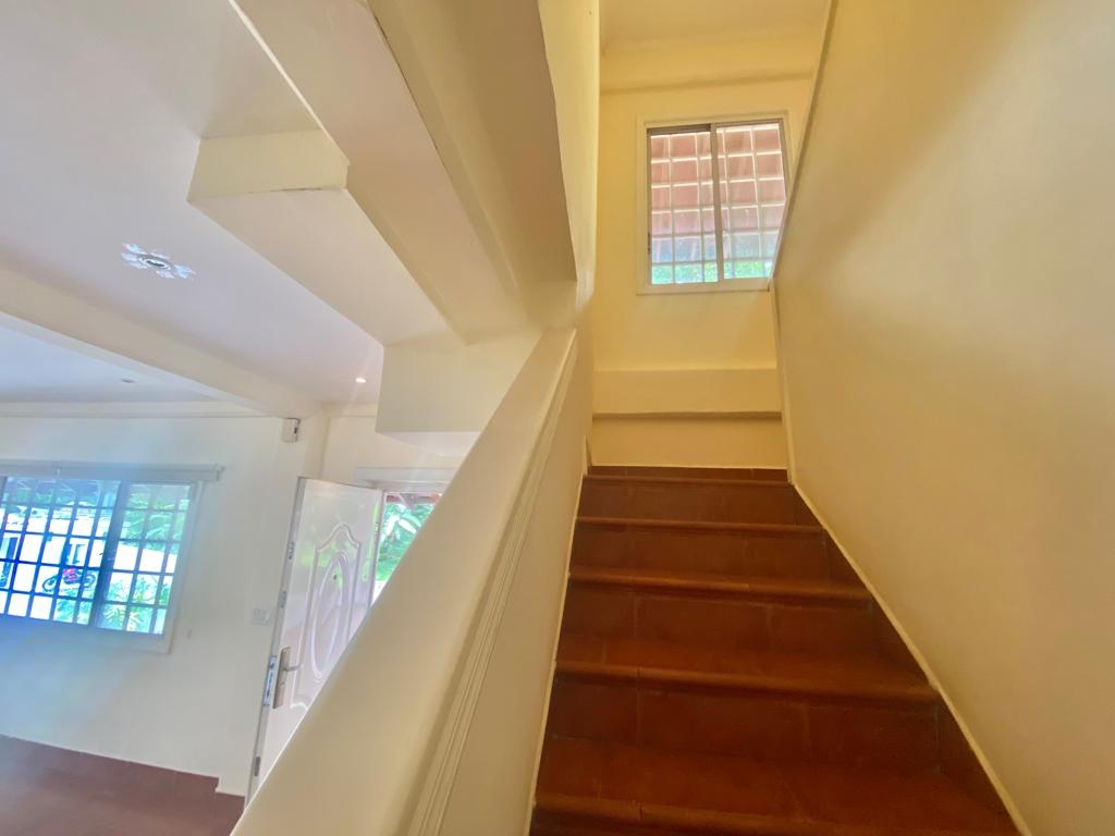 Este lado de esta casa dúplex fue remodelado en 2005 e incluye: 2 habitaciones, 2.5 baños, cocina, comedor y sala, así como una gran terraza cubierta con vista a una hermosa área verde llena de palmeras y otros árboles tropicales.