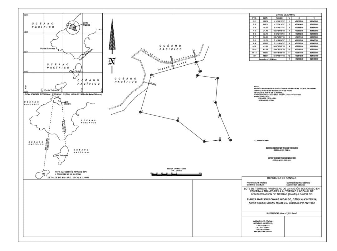PROPERTY FOR SALE IN CEBACO ISLAND, VERAGUAS. OCEAN FRONT, 6.75 HECTARES (16.67 ACRES).