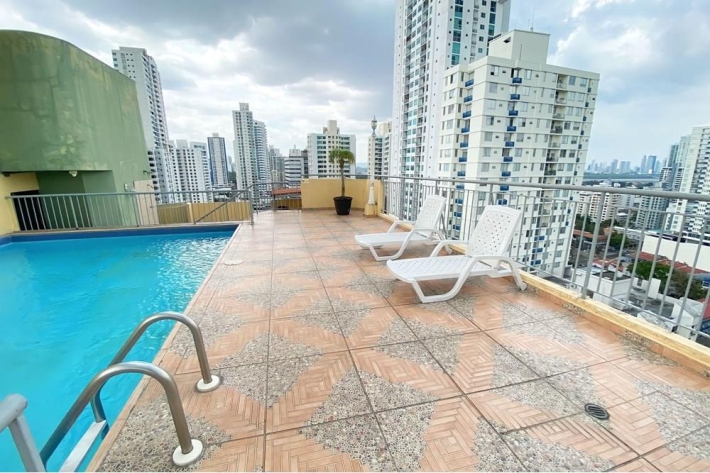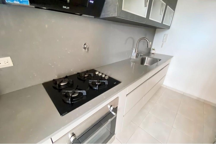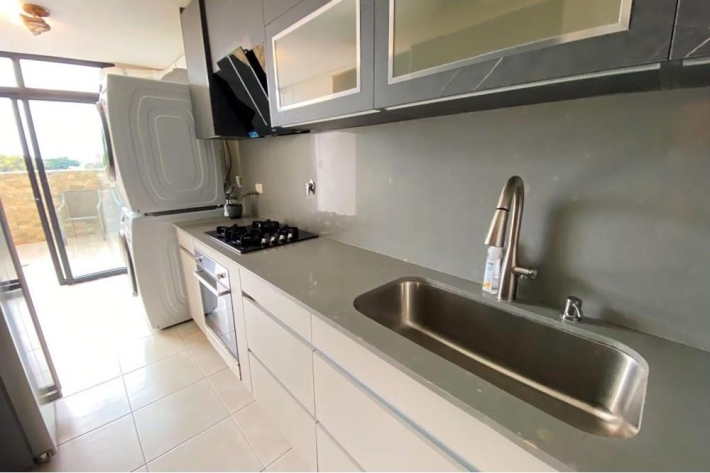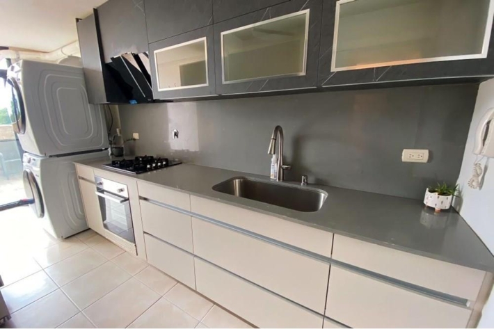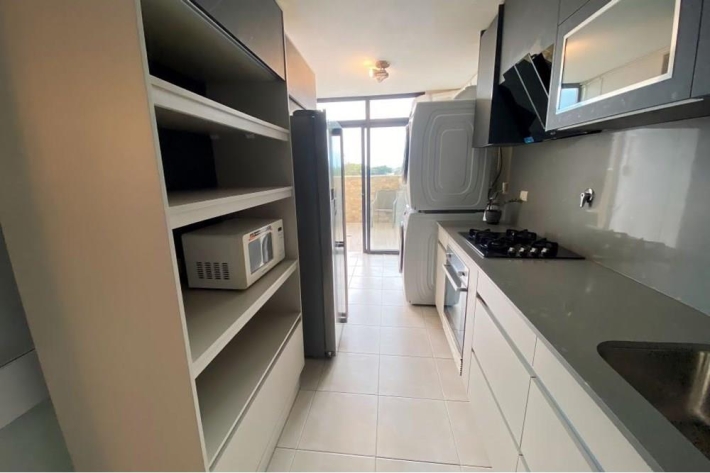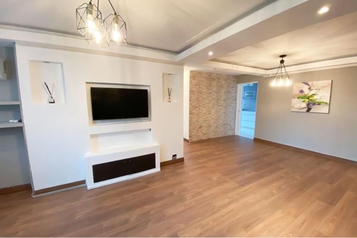 - El apartamento tiene revestimiento de piedras en paredes y diseño de cielo raso con luces incorporadas.