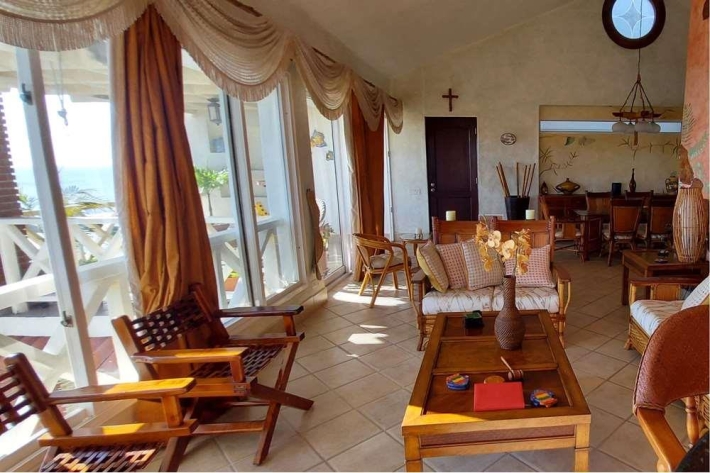 En la escalera de servicio mantiene 2 depósitos en el mismo piso, amplio balcón con puertas completamente desplegables que permiten la integración de toda el área social y de entretenimiento. Esta propiedad cuenta con 2 estacionamientos frente al elevador de entrada, seguridad, área social, club de playa, golf, marina, restaurante y todo lo que desea frente al mar.