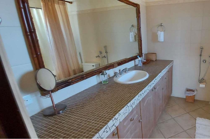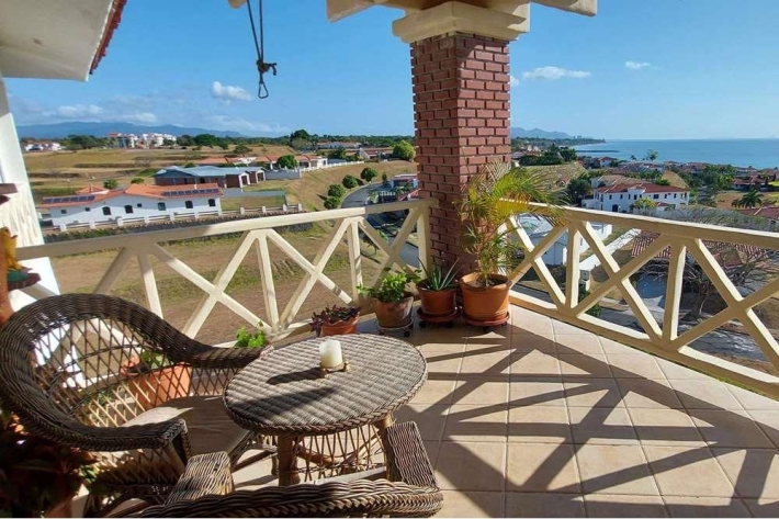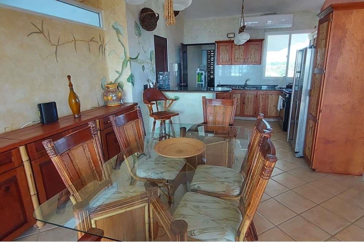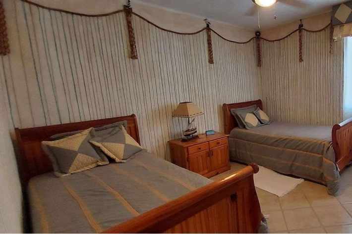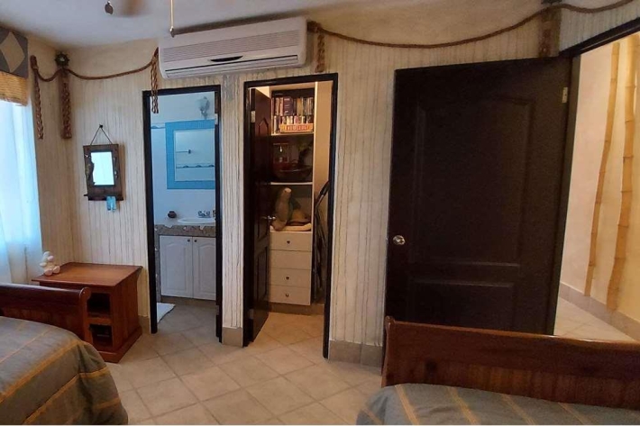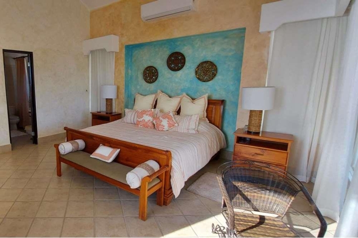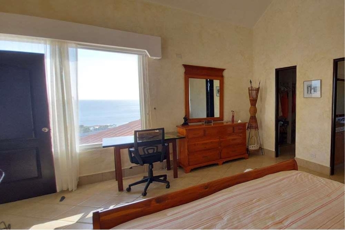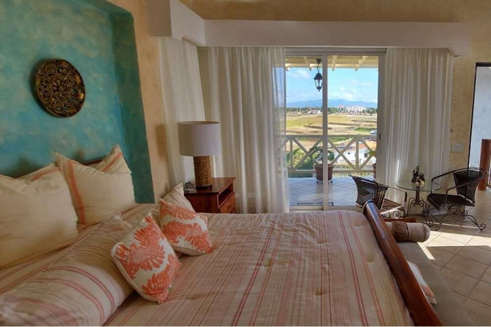 La recámara principal en piso superior tiene una espectacular vista a montañas, también al mar y a la marina. Cuenta con balcón privado, amplio baño con tina y walking closet.
