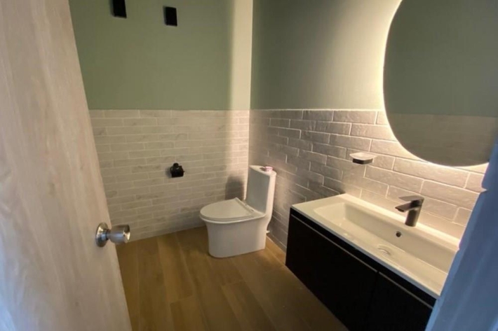 La oficina esta distribuida en 1 sala de reuniones, 3 puestos de trabajo abiertos, 3 oficinas privadas, 1 baño interno, 1 cocina con mini comedor y 1 recepción separada.